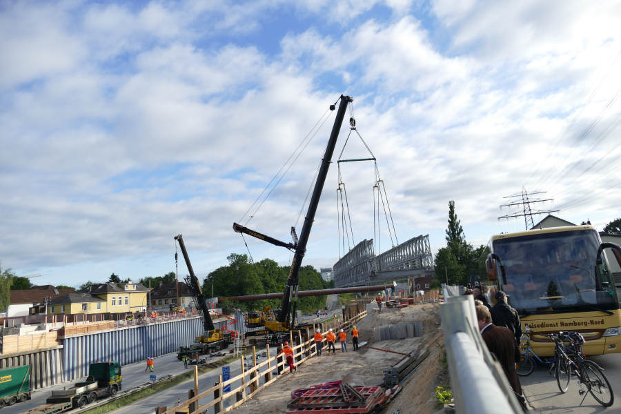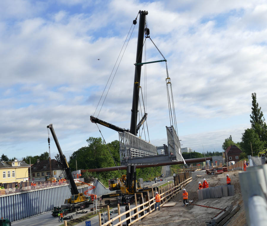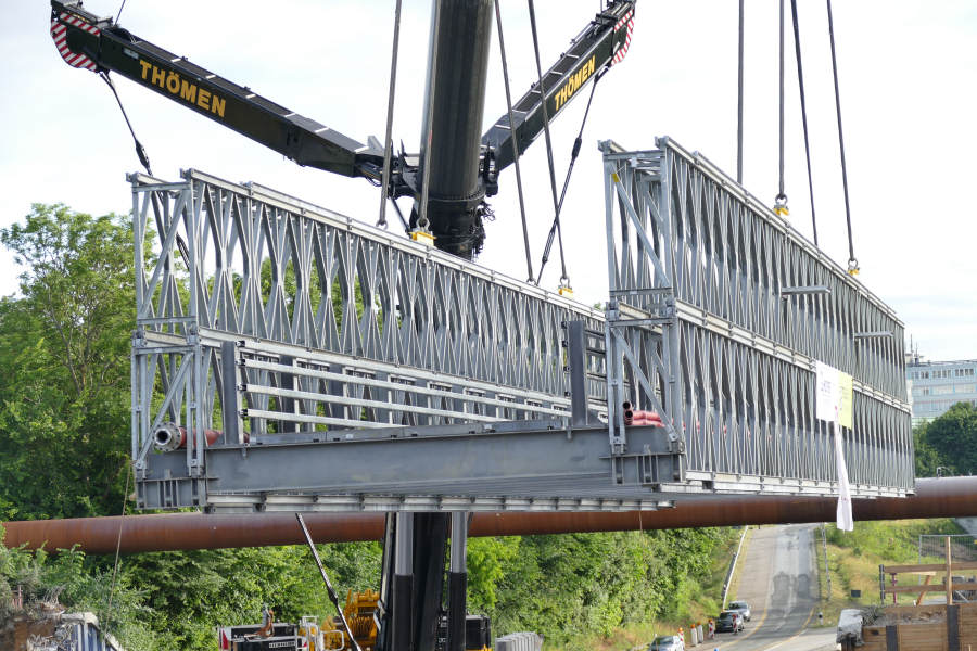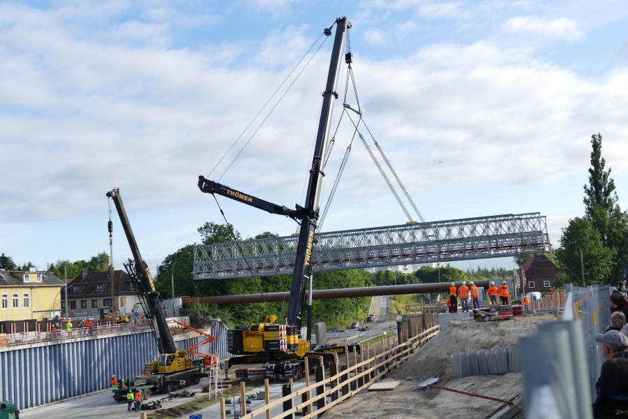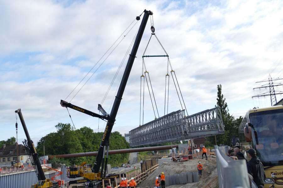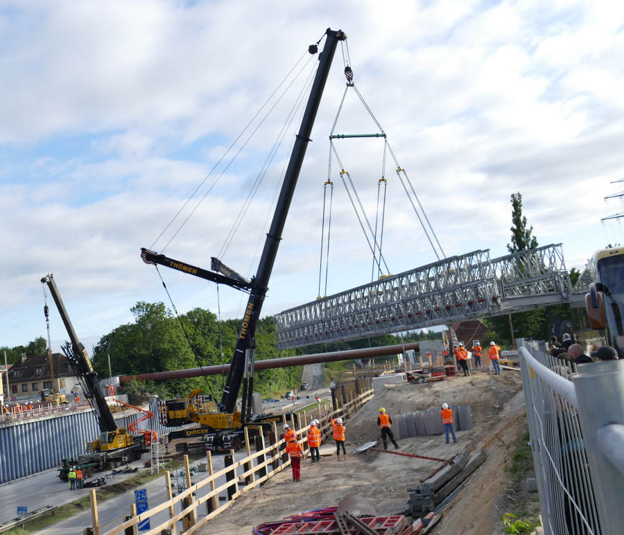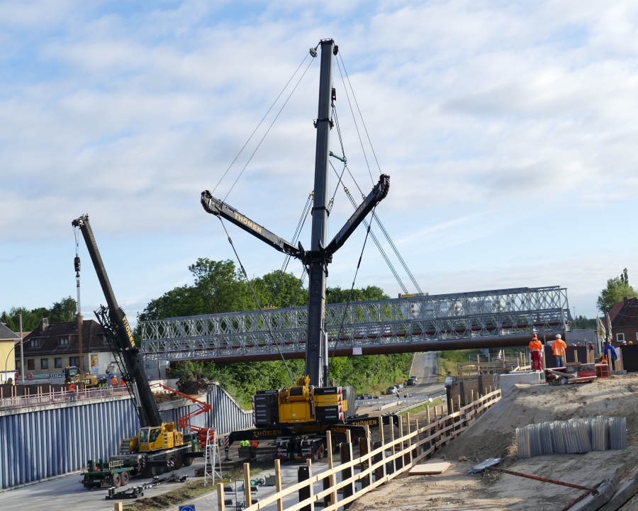 Einhub einer Behelfsbrücke über die A 7 in HH Stellingen