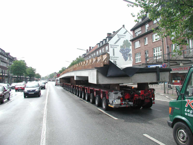 Transportfahrzeuge bei den Brückeneinbauten an der Landwehr