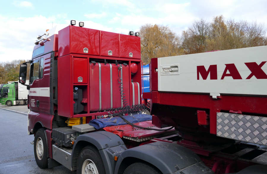 Im November 2016 traf ich diesen Transport von Max Goll auf dem Rasthof Harburger Berge Ost an der A 7 an.