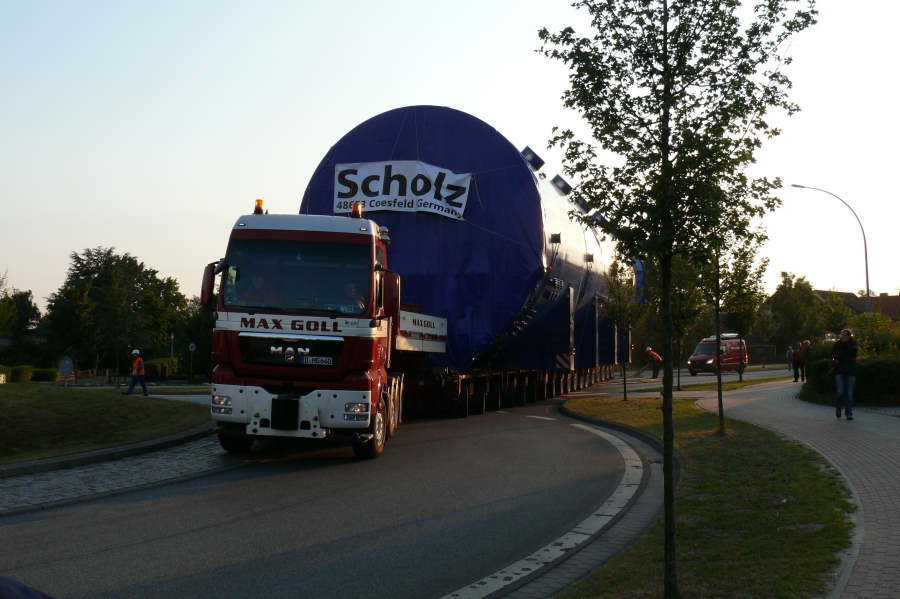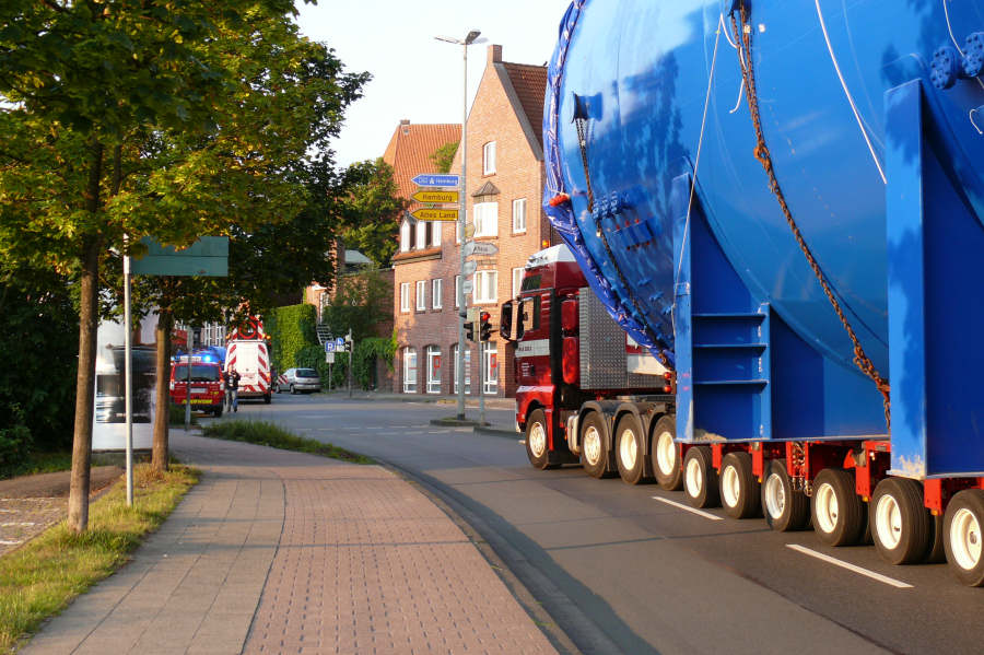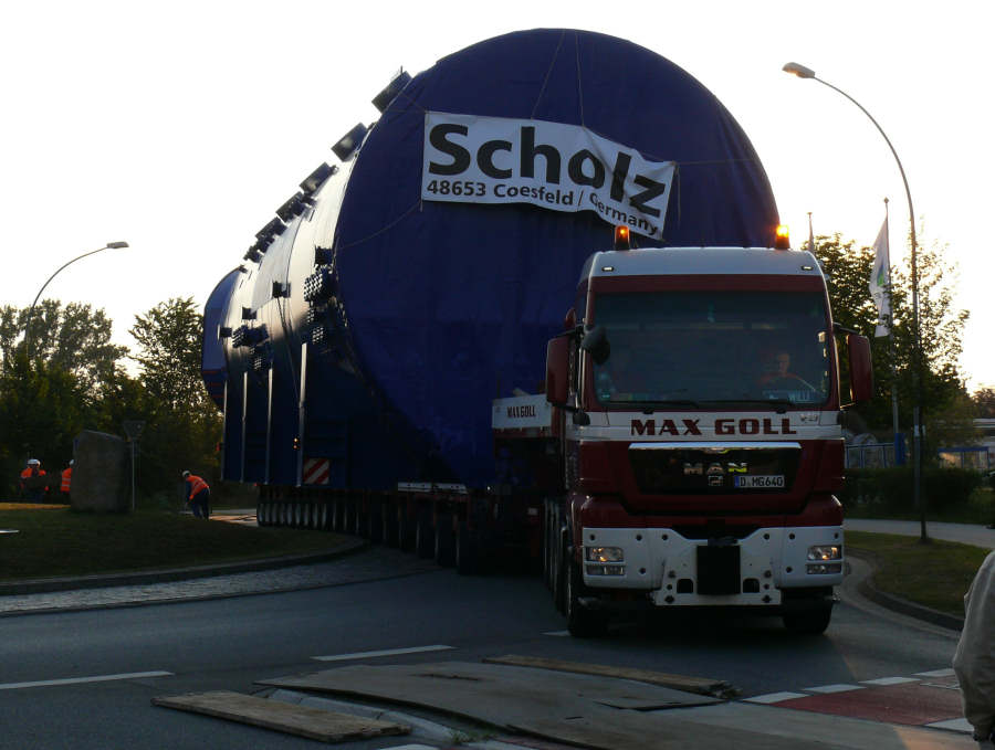 Ohne große Probleme konnte der Transport den Kreisel durchfahren