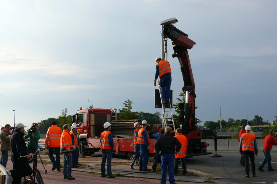 Der Transport soll im Gegenverkehr die Abfahrt der Autobahnanschlußstelle befahren, um dann die Autobahn über eine provisorische durchfahrt