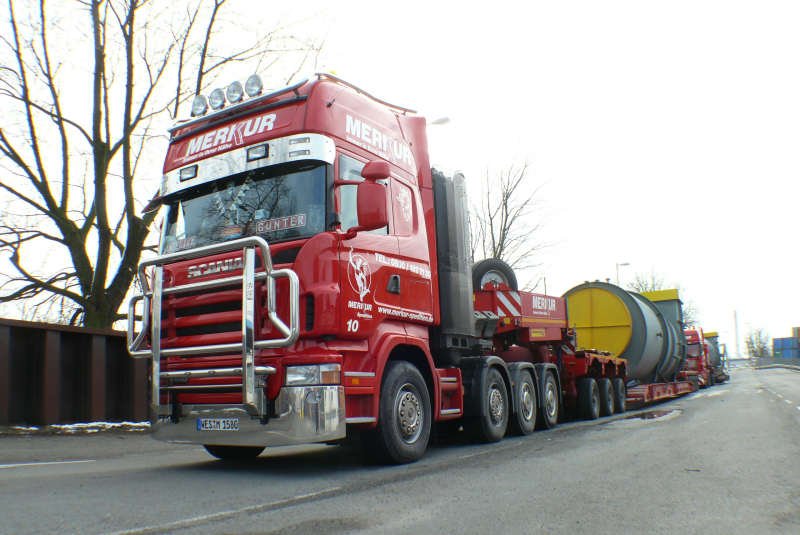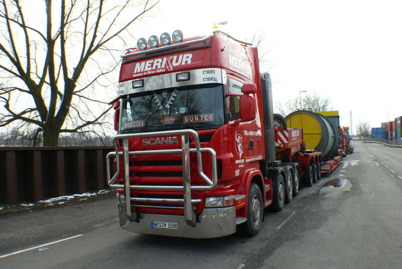 Schwertransportkombinationen von Merkur in den Hamburger Hafen.