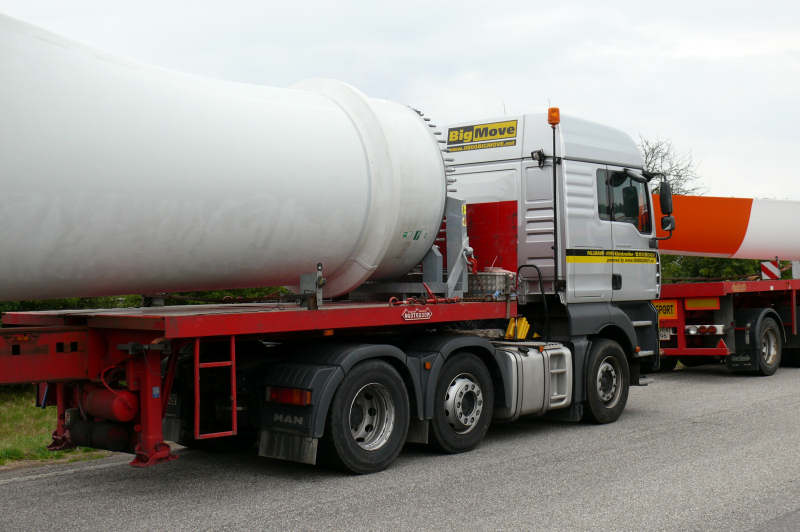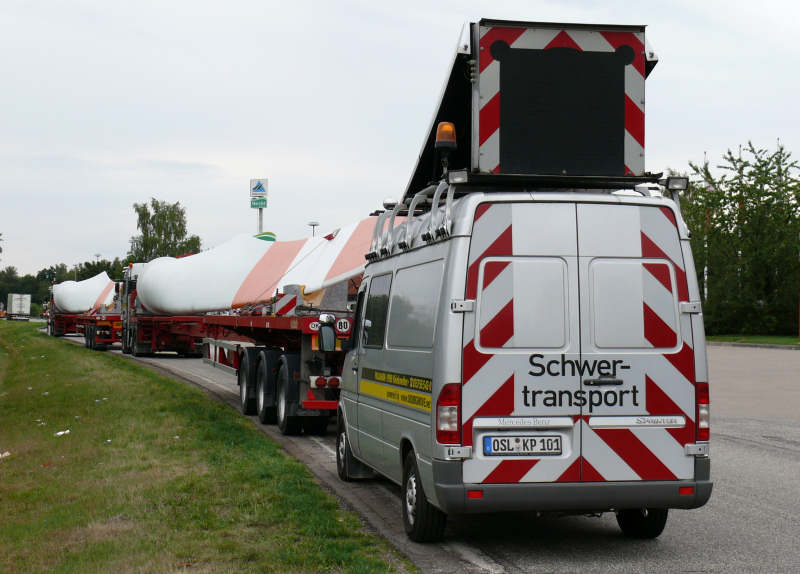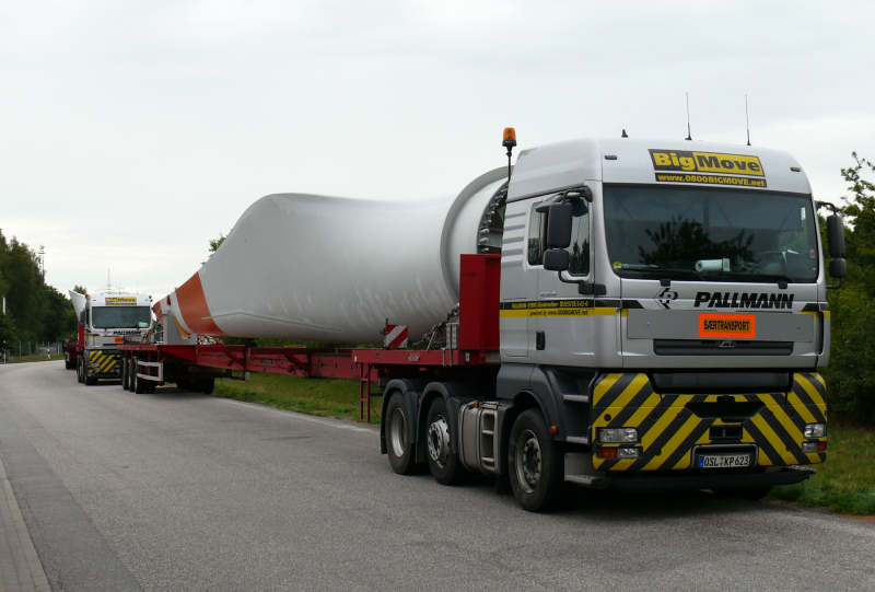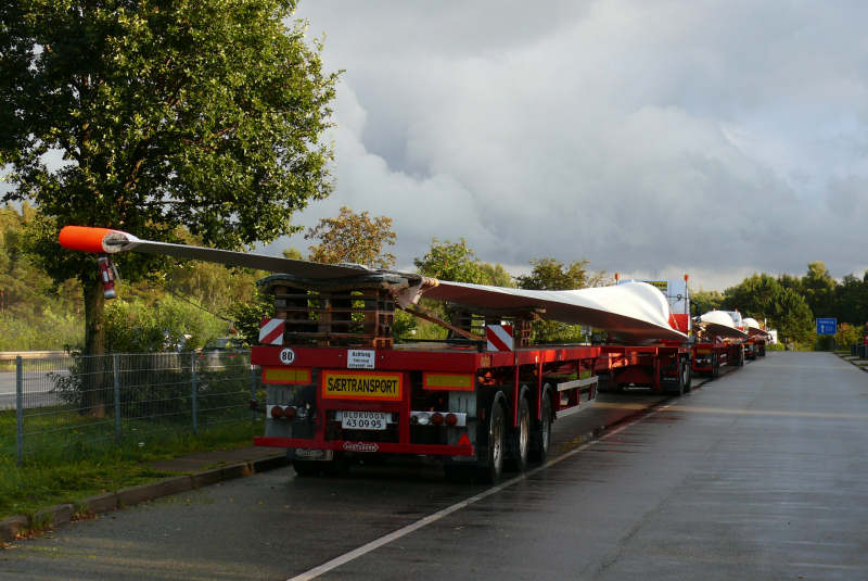 Windenergie Flügeltransporte auf dem Rasthof Holmmoor