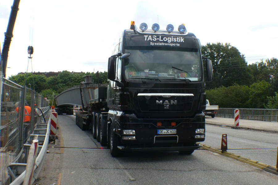 MAN 41.540 TGX mit Brückenbinder Nachläufer Transport
