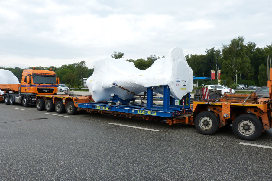 Transport von Maschinenteilen einer Senvion 3.2 M WEA