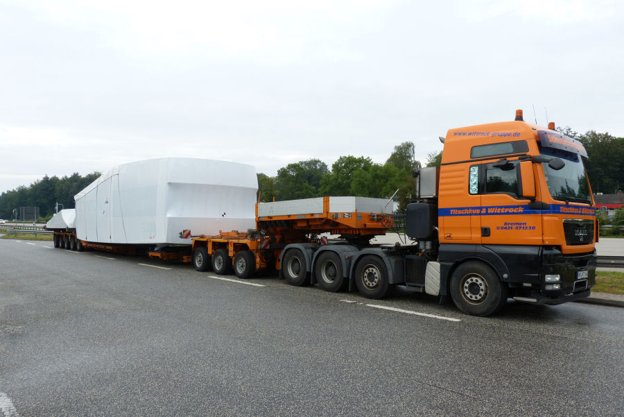 Transport von Maschinenteilen einer Senvion 3.2 M WEA