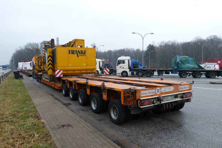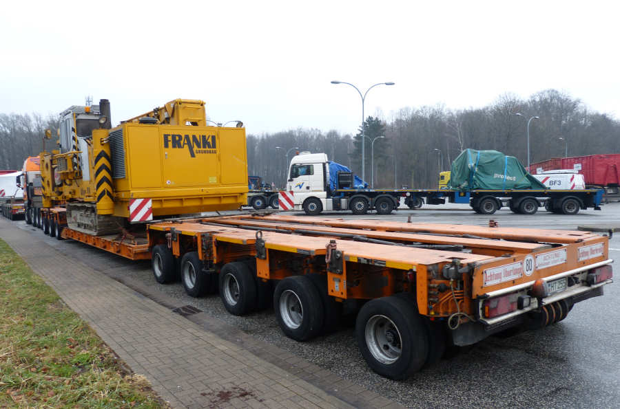 MAN 41.540 mit Goldhofer THP 3/5 Tiefladekombination und Franki Atlas Pfahlgerät