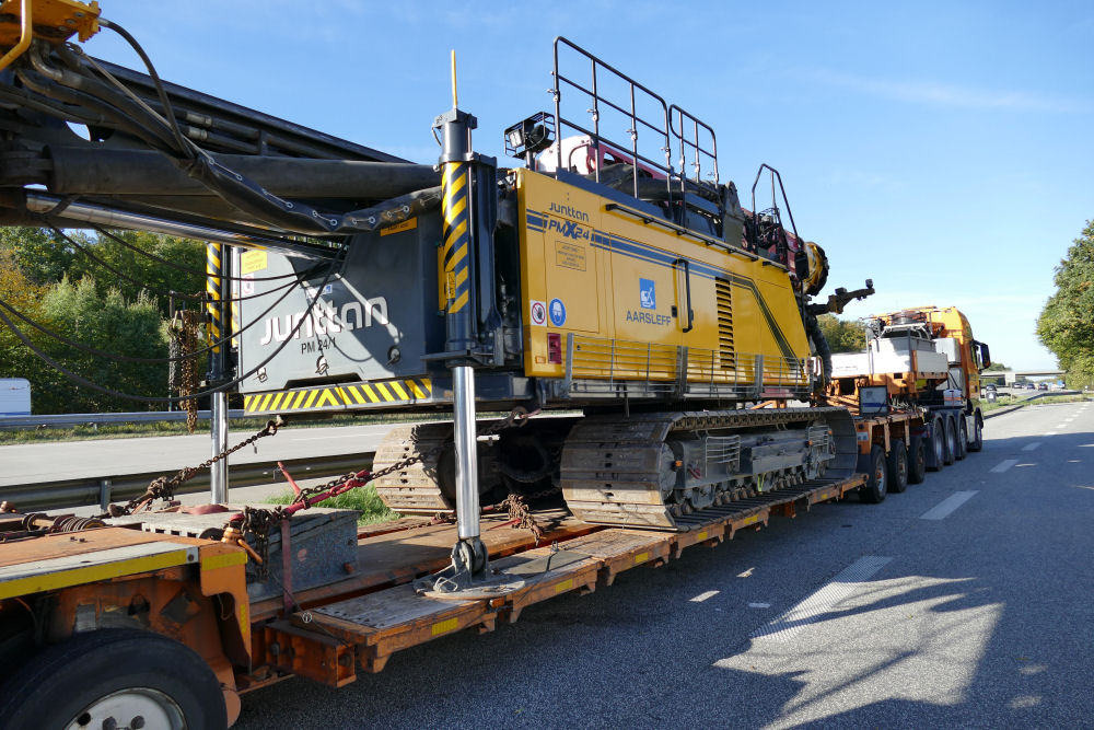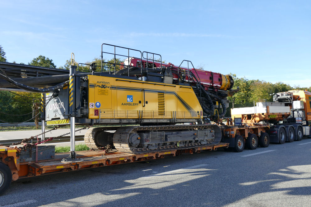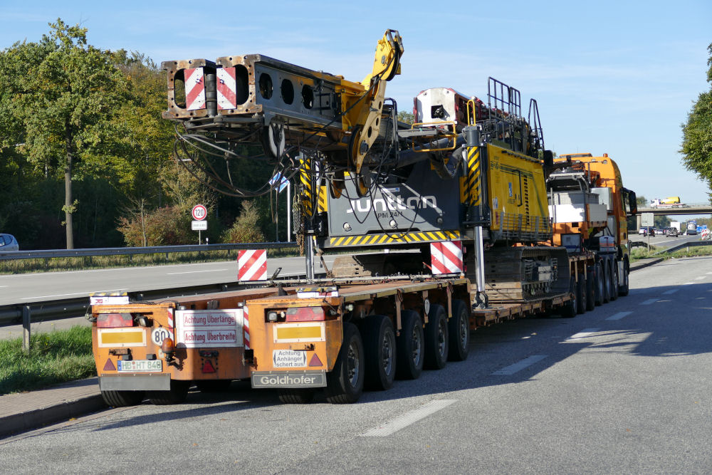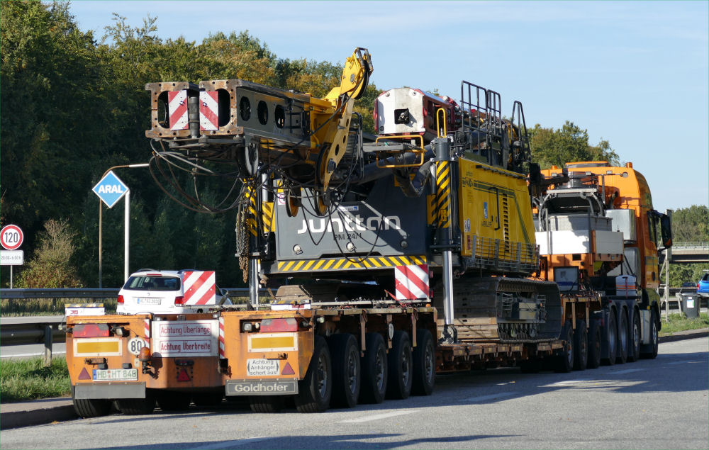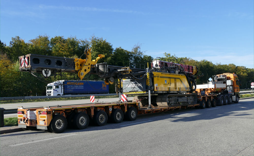 MAN 41.560 TGX mit Goldhofer THP XLE 3-5 Tieflader und Junttan PMX 24 Ramme