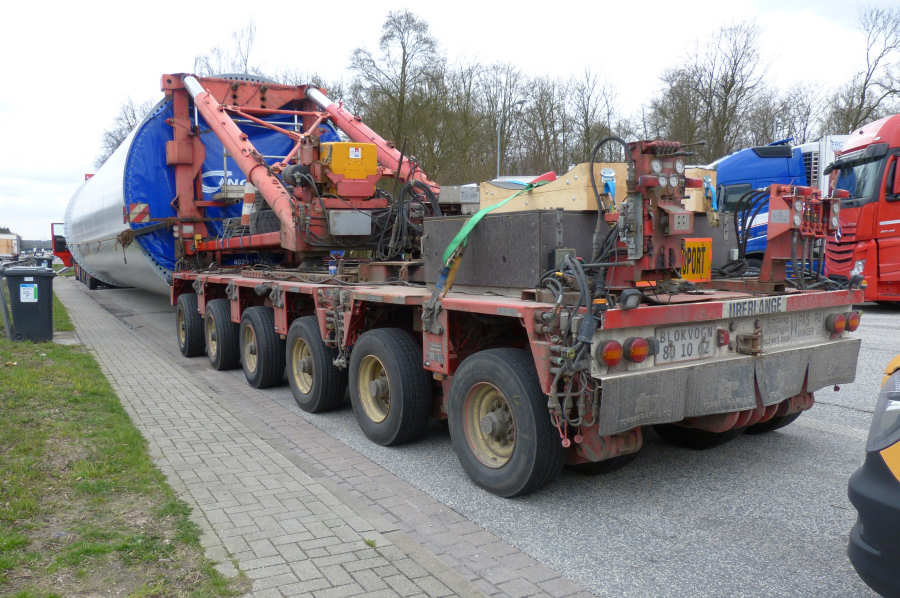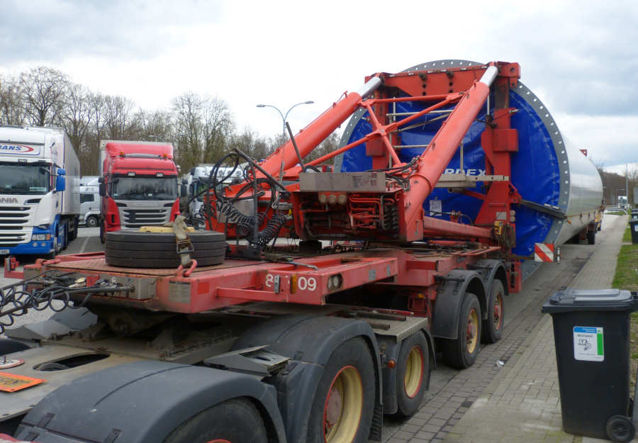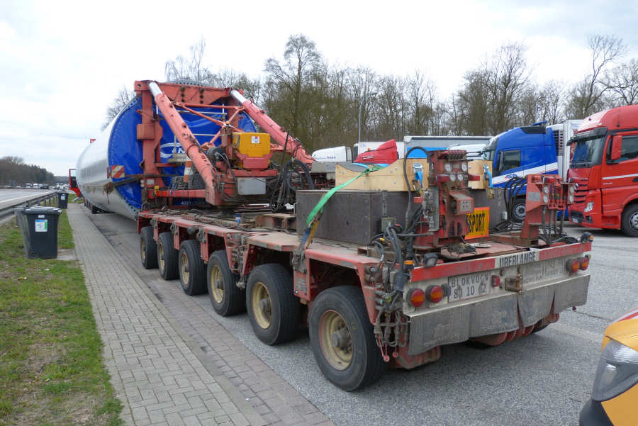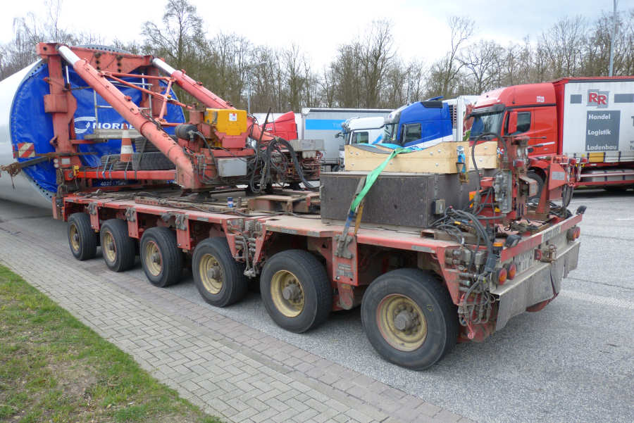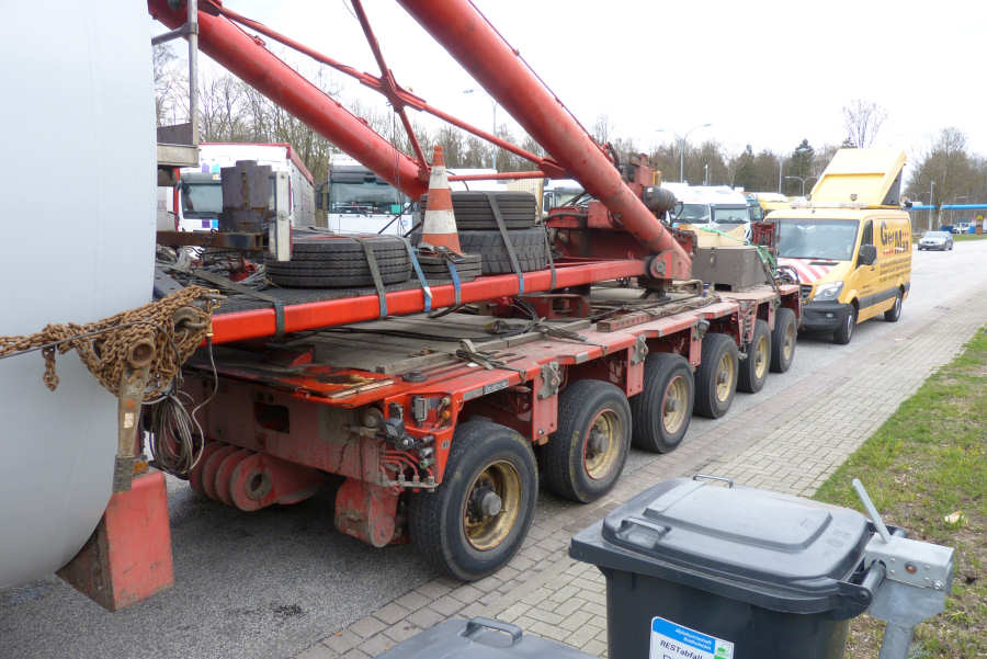 MAN 41.540 TGX mit großer Goldhofer Turmadapterkombination und WEA Bodensektion