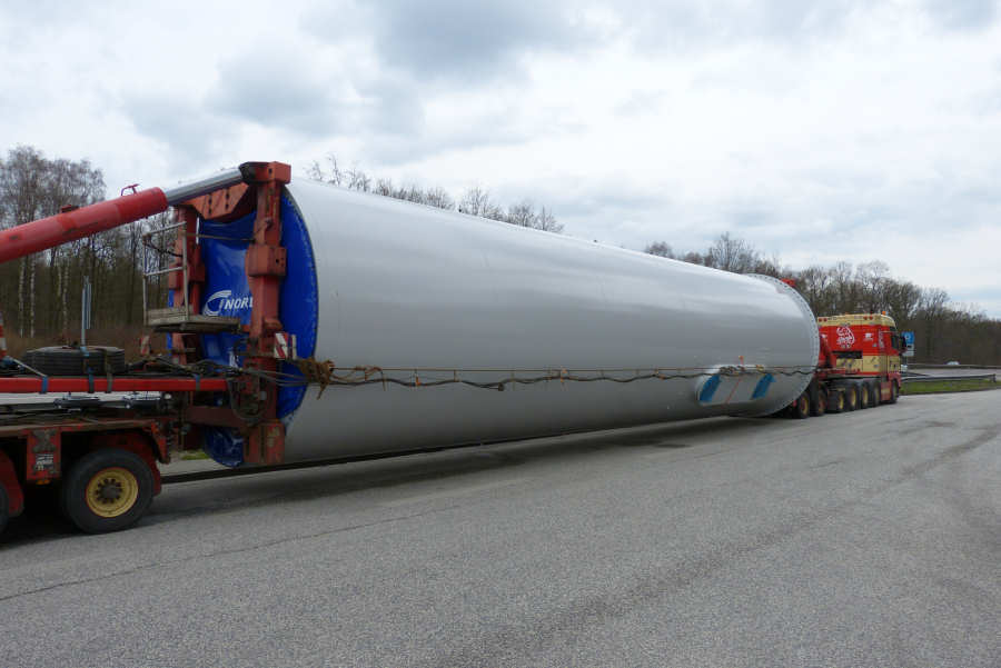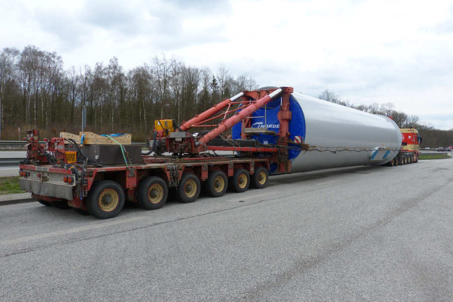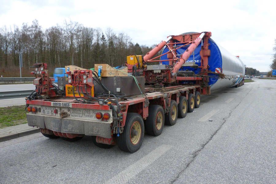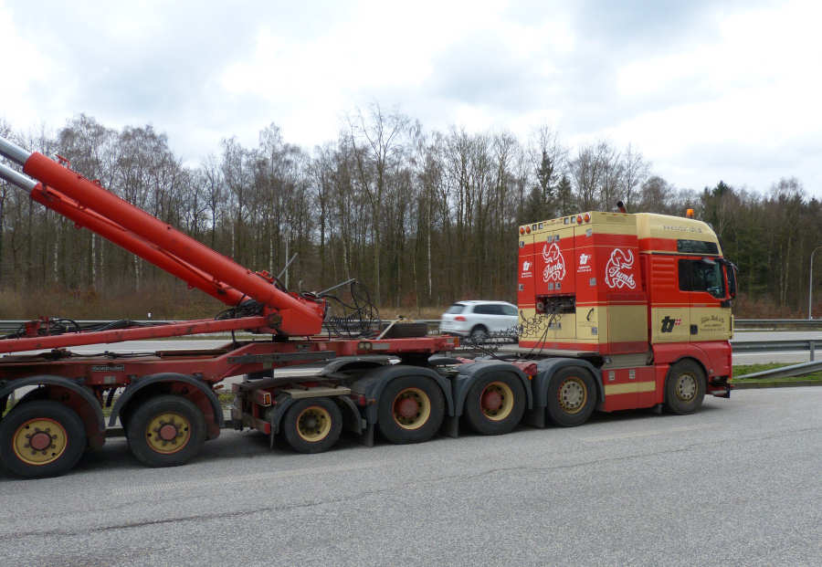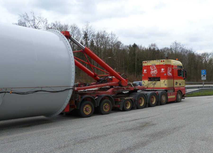 MAN 41.540 TGX mit großer Goldhofer Turmadapterkombination und WEA Bodensektion
