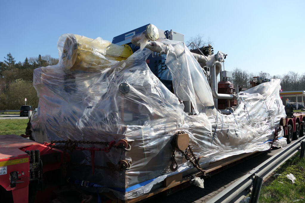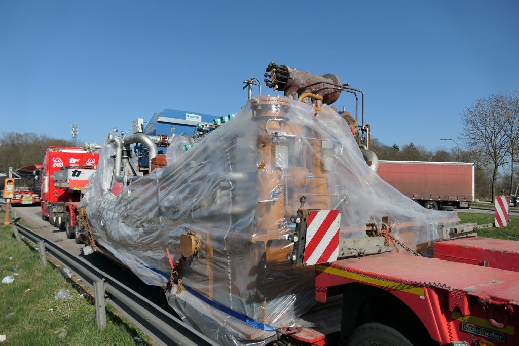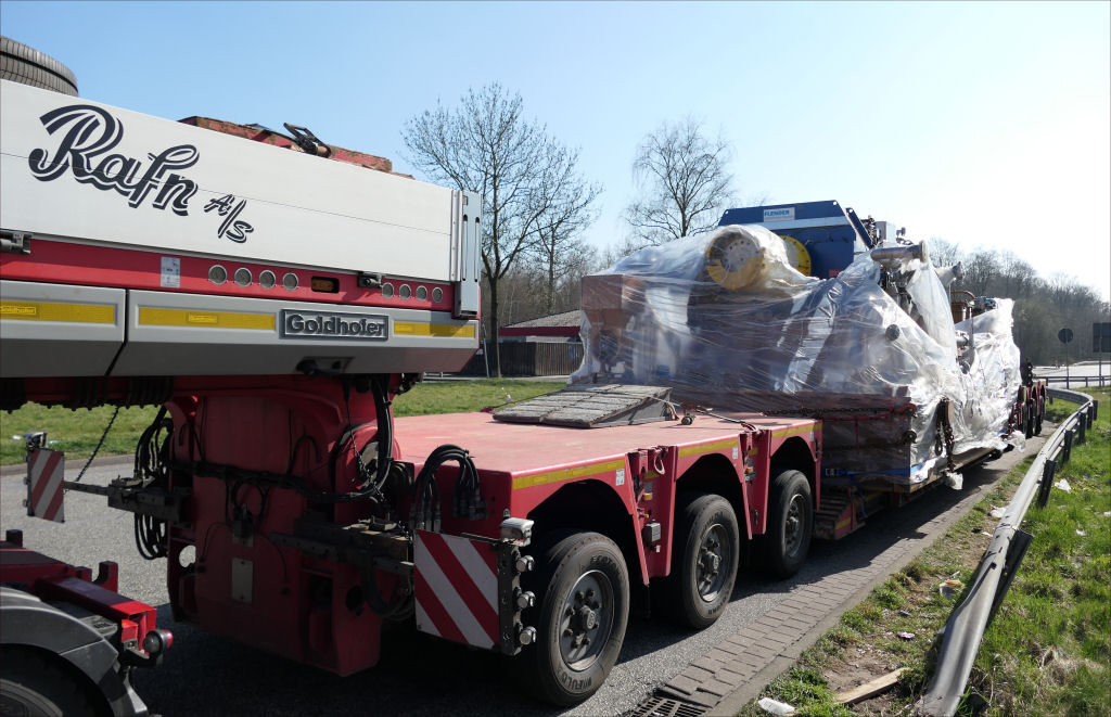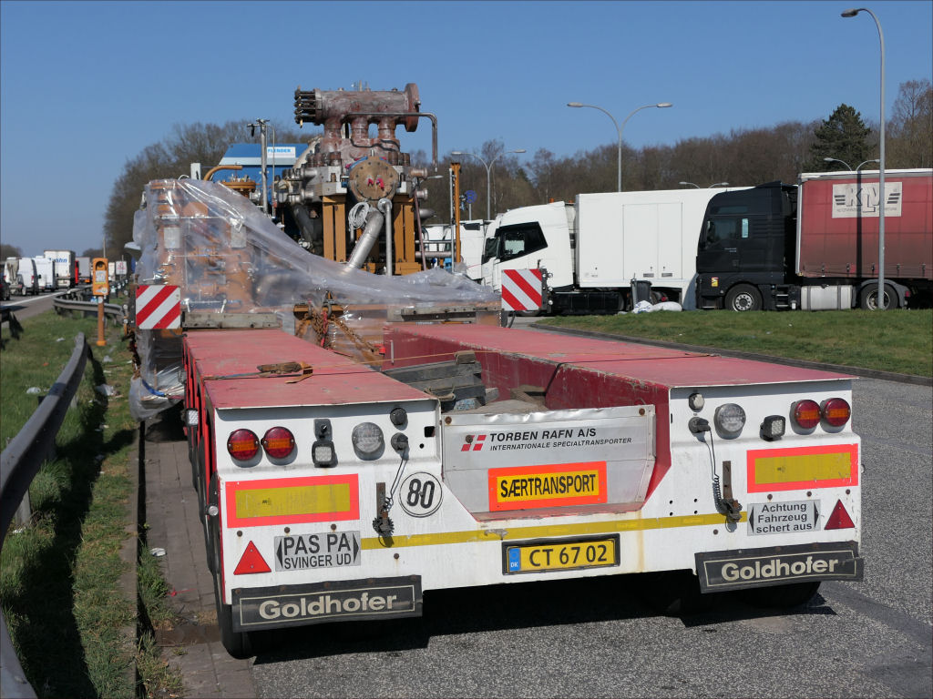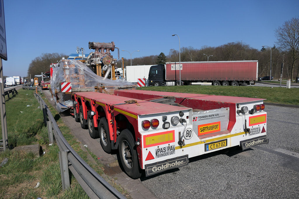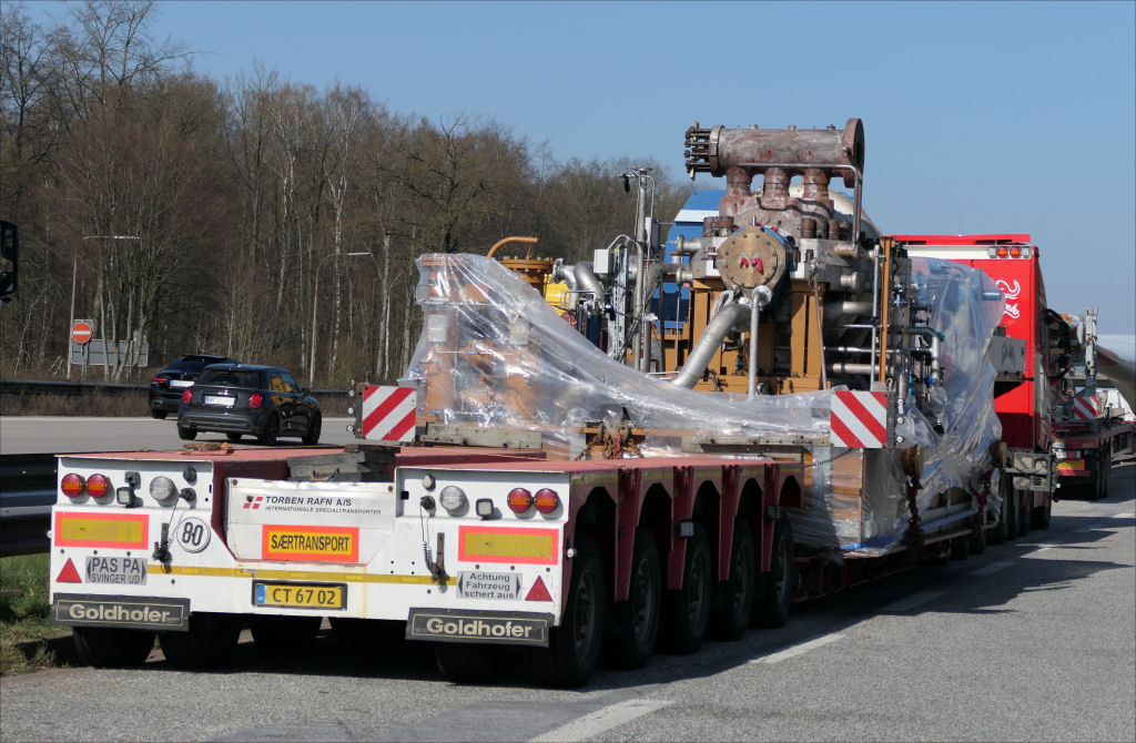 Volvo FH 04 750 mit Goldhofer STZ VP 8 Tieflader und Pumpenstation