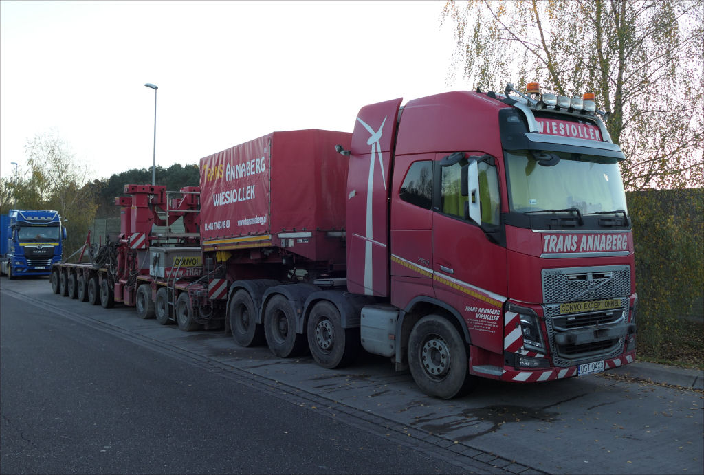 Volvo FH 05 750 8x4 mit Goldhofer 3-6 Rohradapter Kombination, auf Leerfahrt