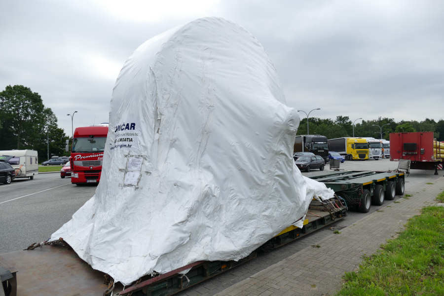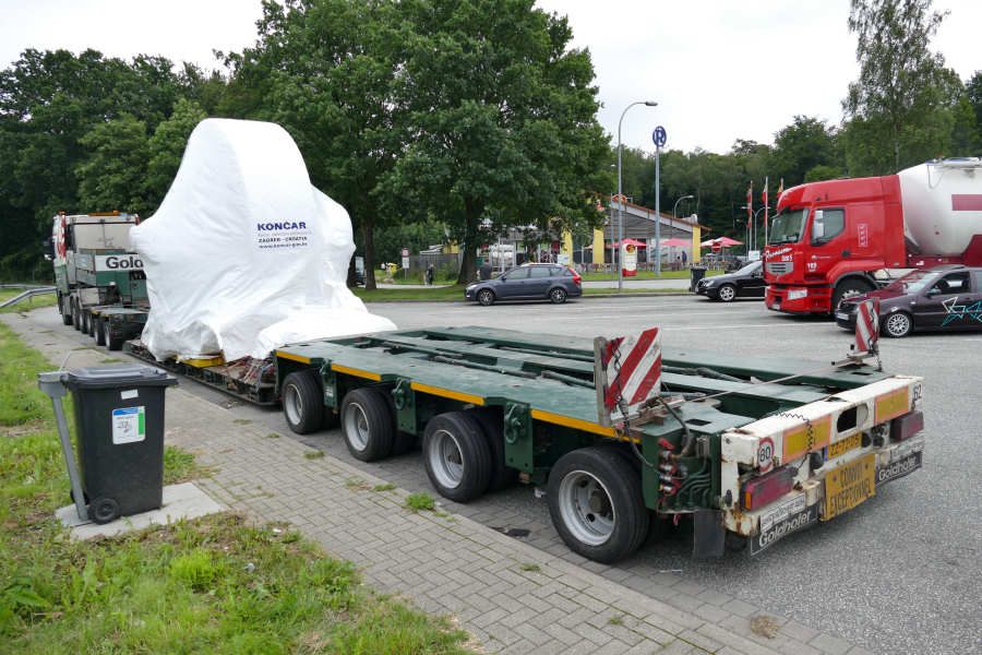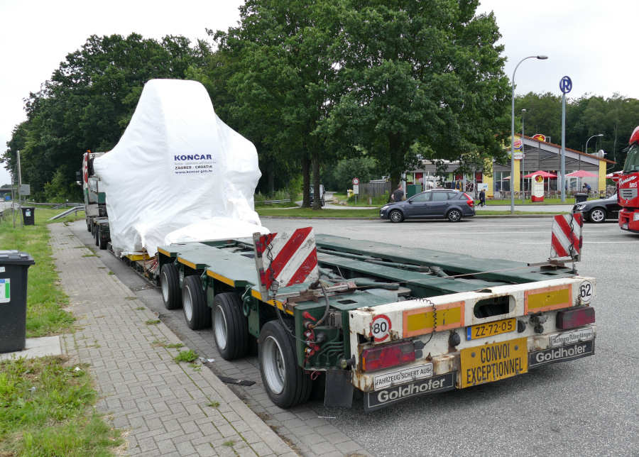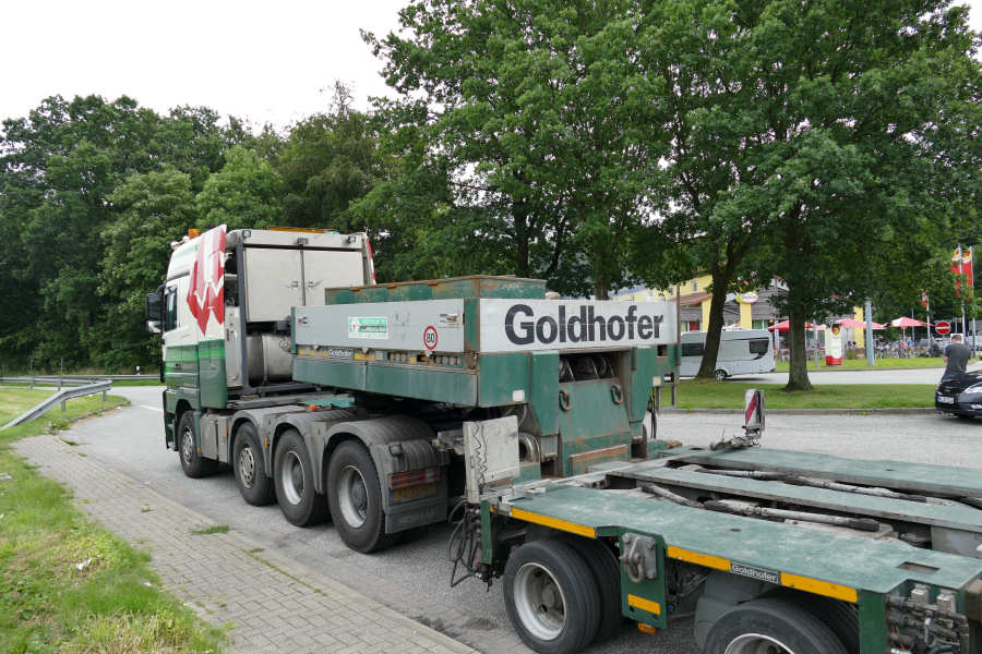 MB 4155 Actros MP 3 8x4 Titan mit Goldhofer 2/4 Tieflader und Generator Rotor