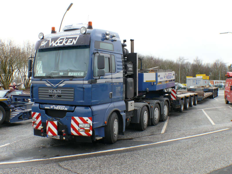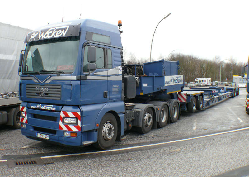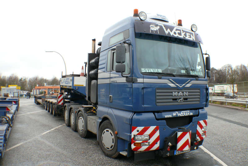 Es handelte sich um eine MAN TGA 41.660 mit Goldhofer Tieflader und eine MAN TGA 41.530