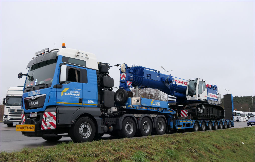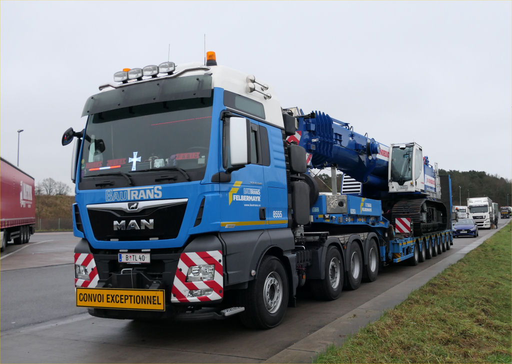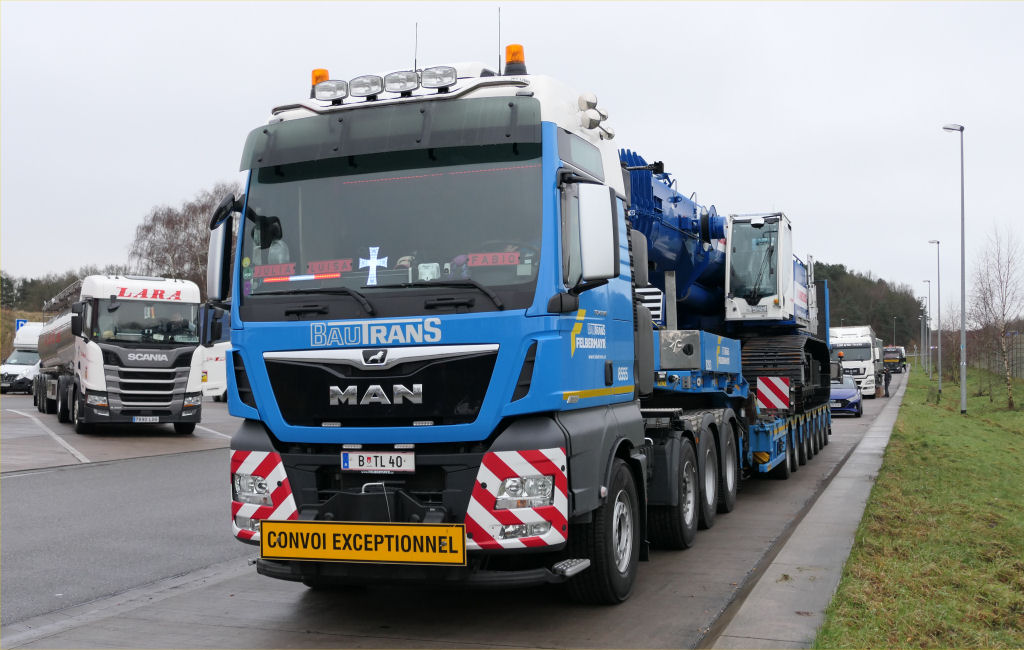 Die Transportkombination bestand aus MAN 41.640 TGX mit siebenachsigem Faymonville Multimax Semitieflader.