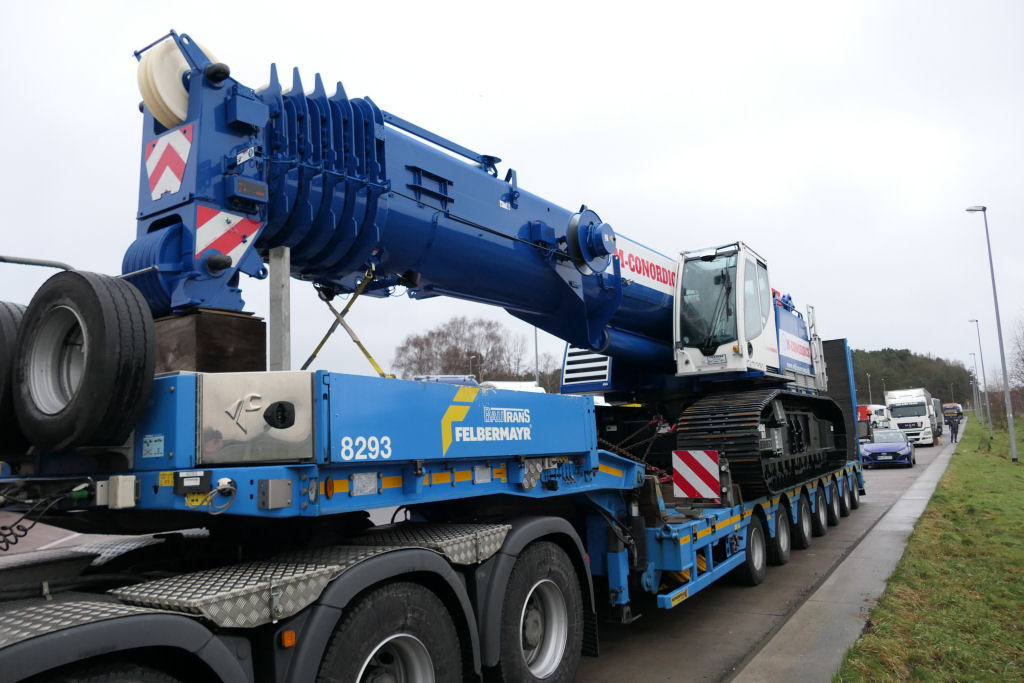 Der Raupenteleskopkran war für einen Empfänger in Dänemark bestimmt.