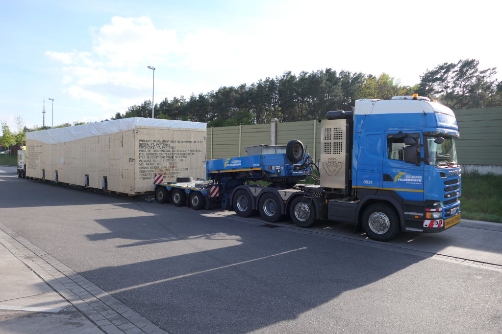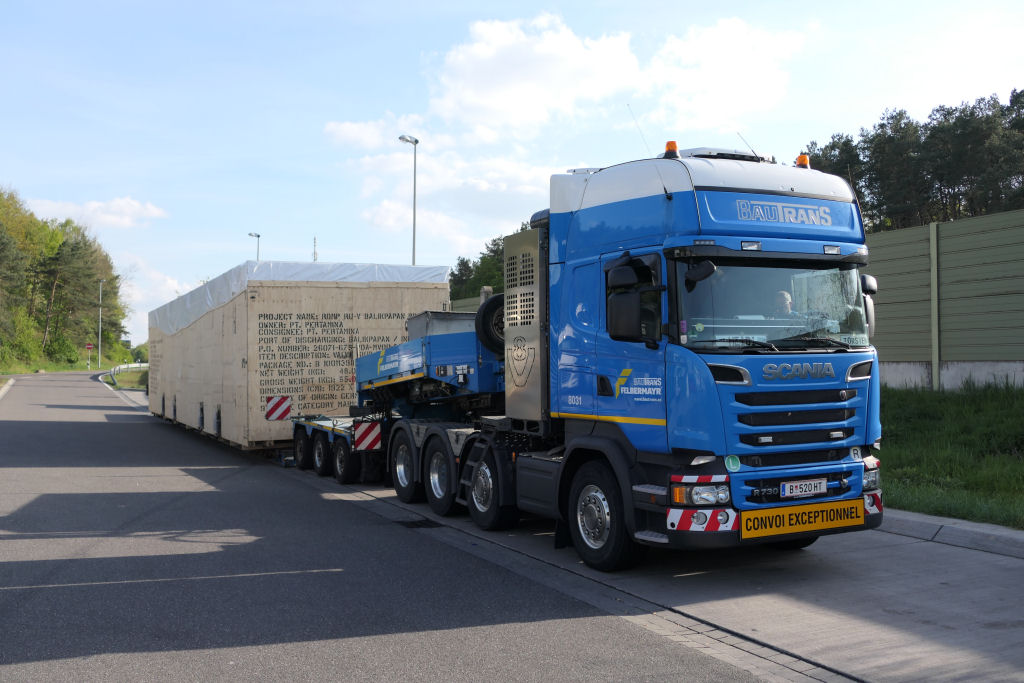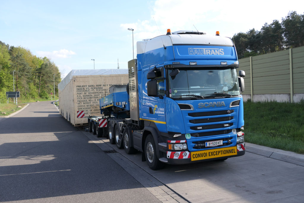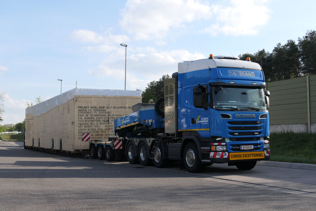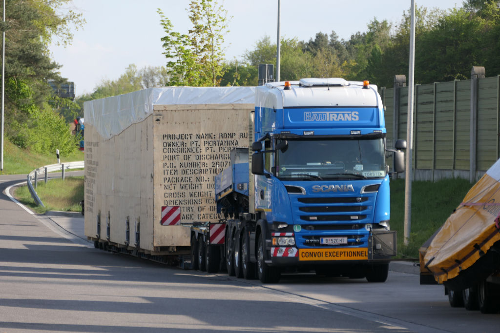 Scania R 730 mit großer Überseekiste für den Export