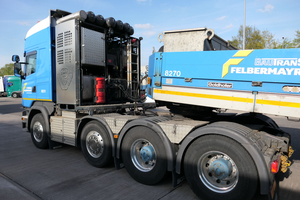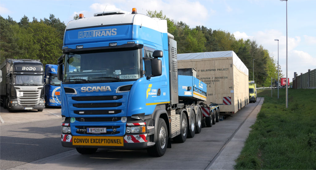 Die Schwerlastkombination bestand aus Scania R 730 mit Goldhofer STZ VP 8 (3-5) Tieflader