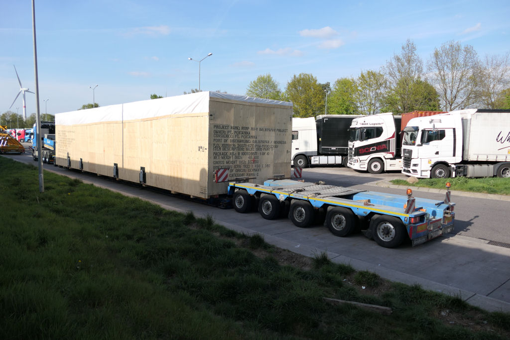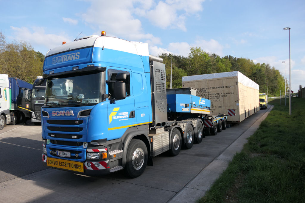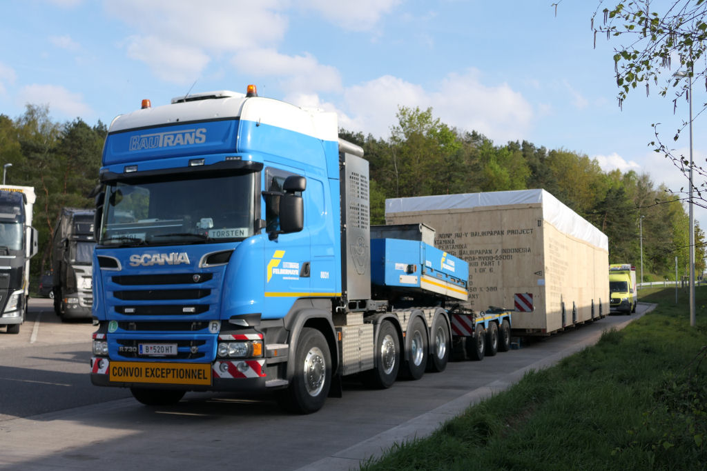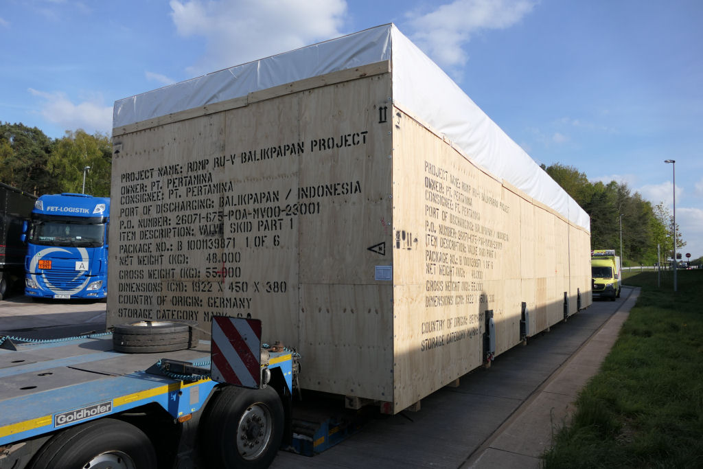 Transportiert wurde eine große Überseekiste für den Export nach Indonesien.