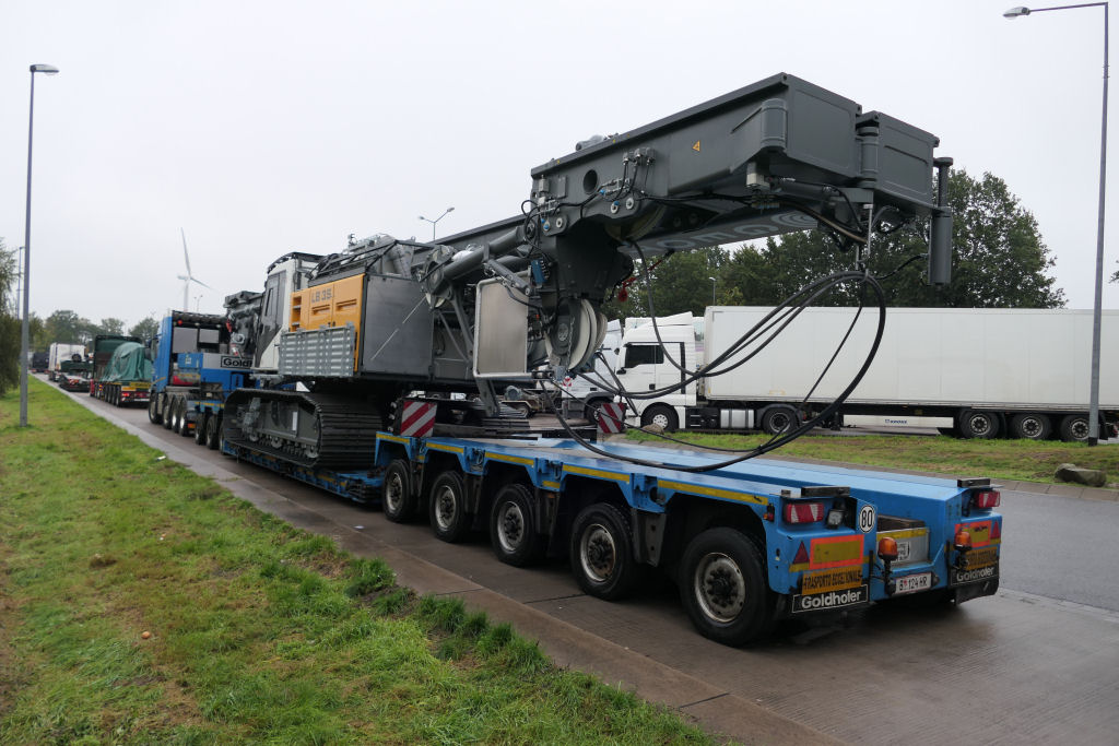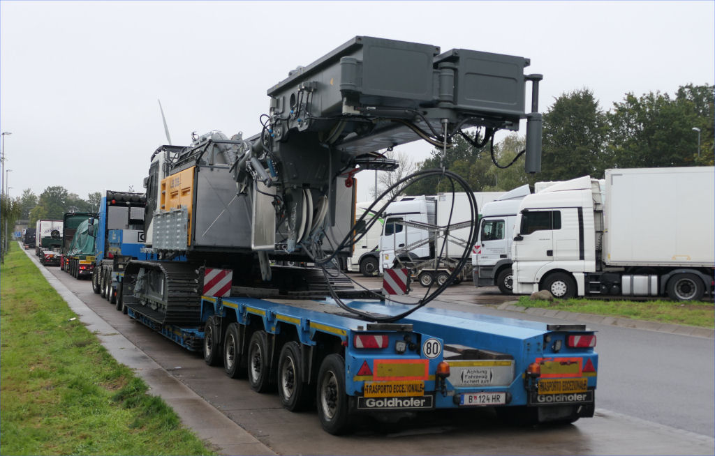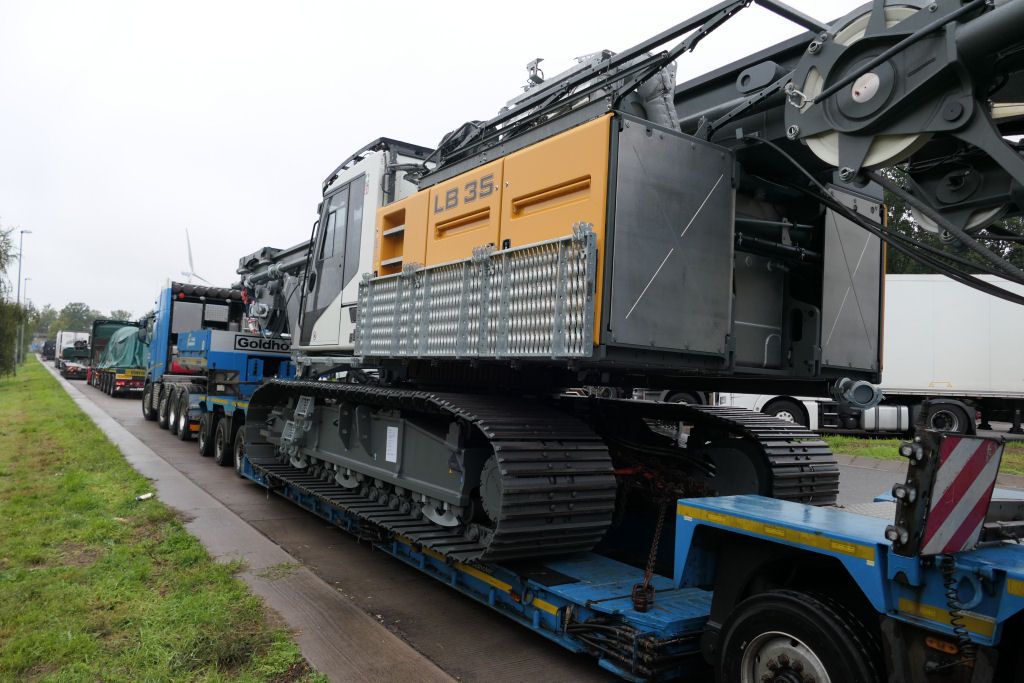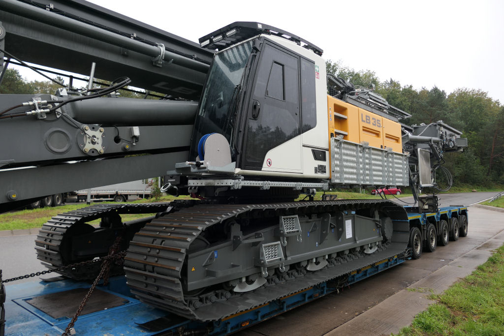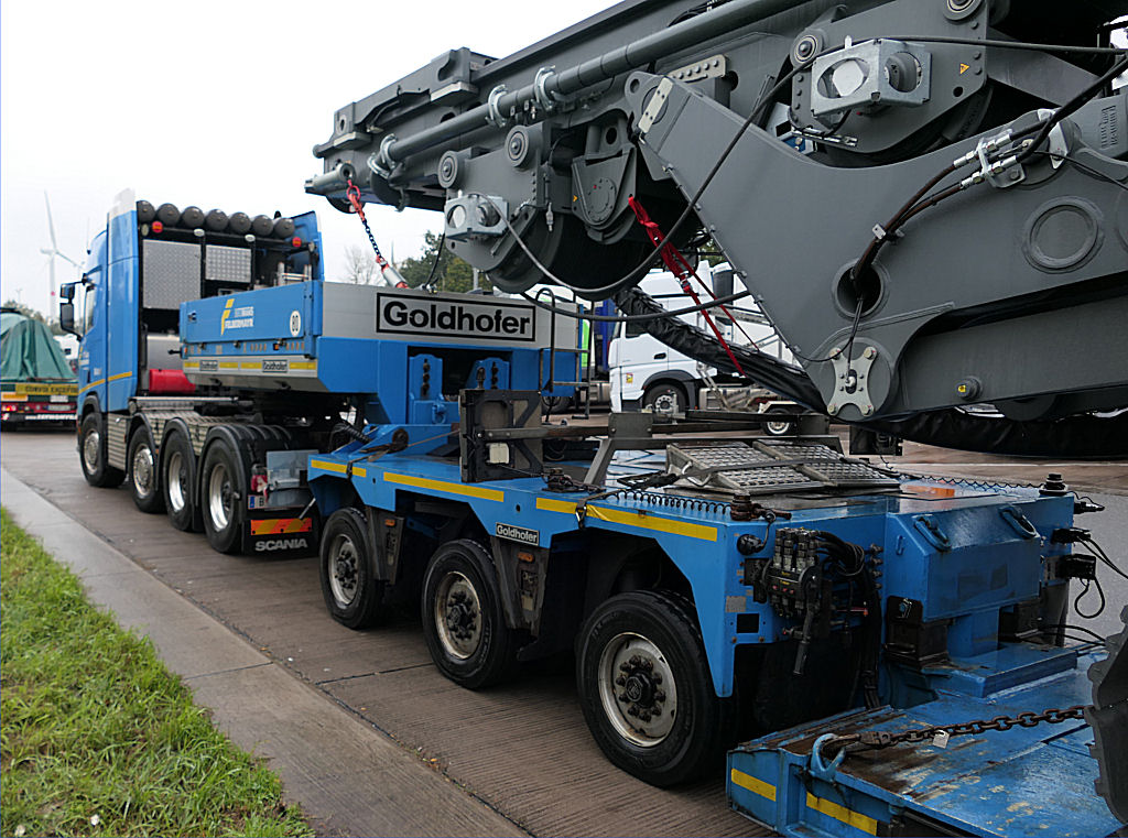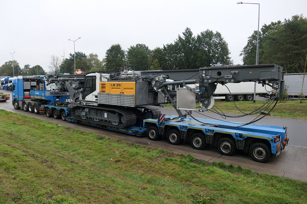 Scania S 730 mit Goldhofer STZ-VP 8 Tieflader und Liebherr LB 35 Drehbohrgerät