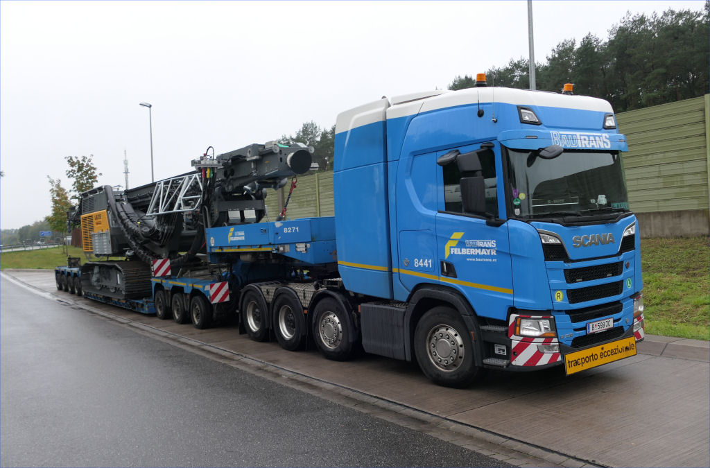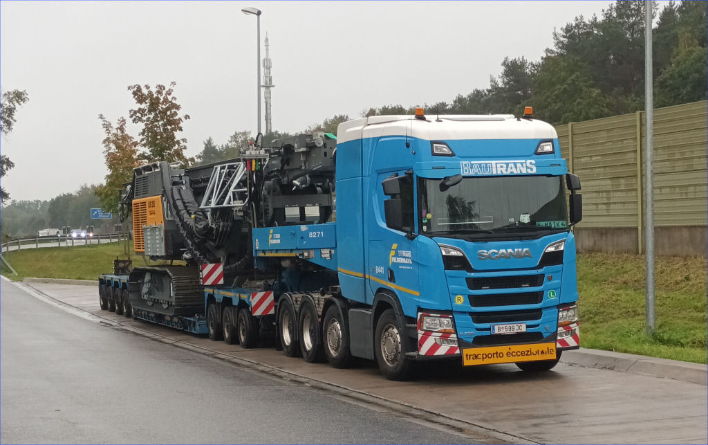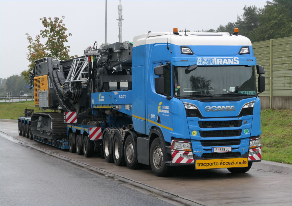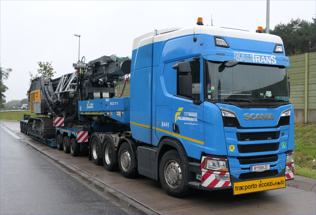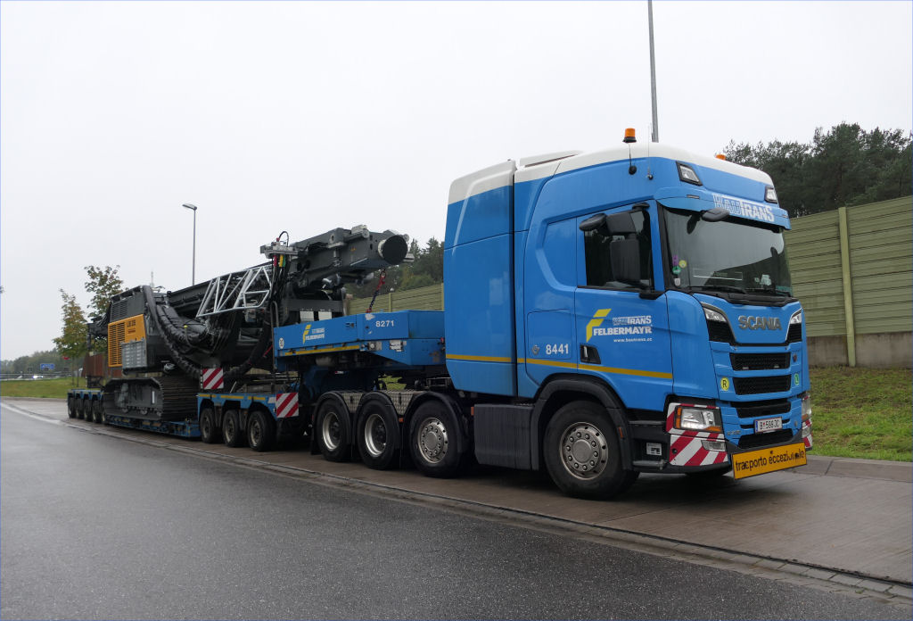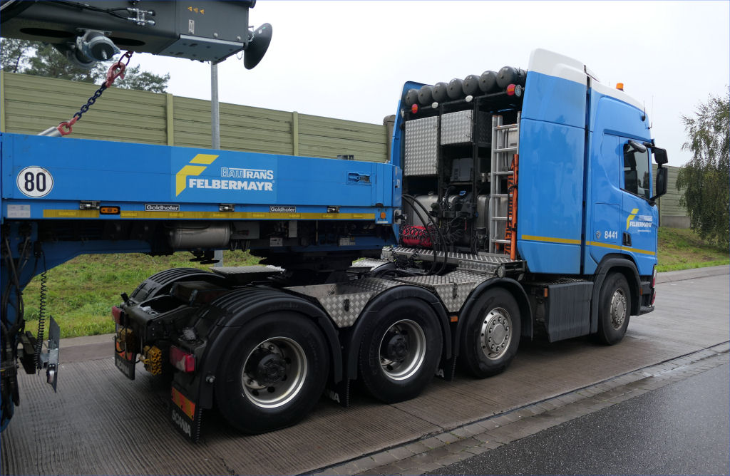 Scania S 730 mit Goldhofer STZ-VP 8 Tieflader und Liebherr LB 35 Drehbohrgerät