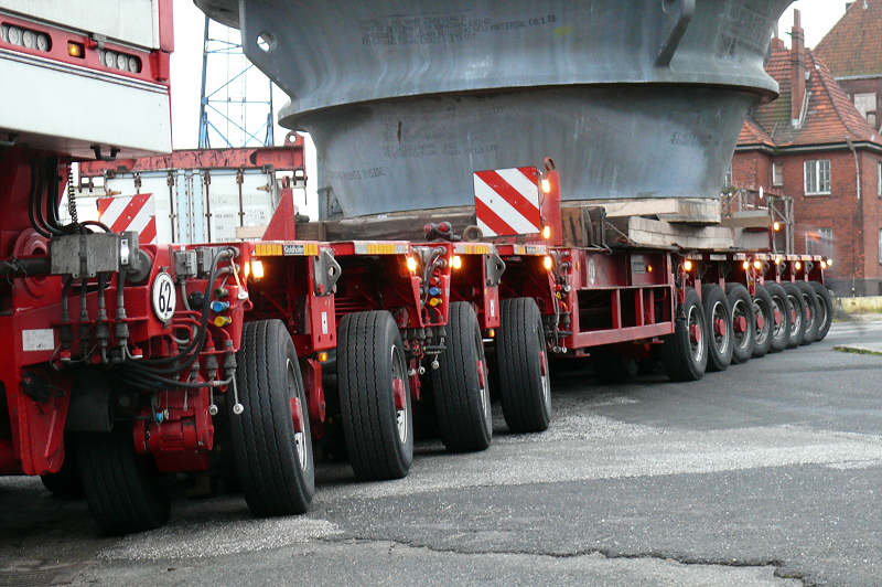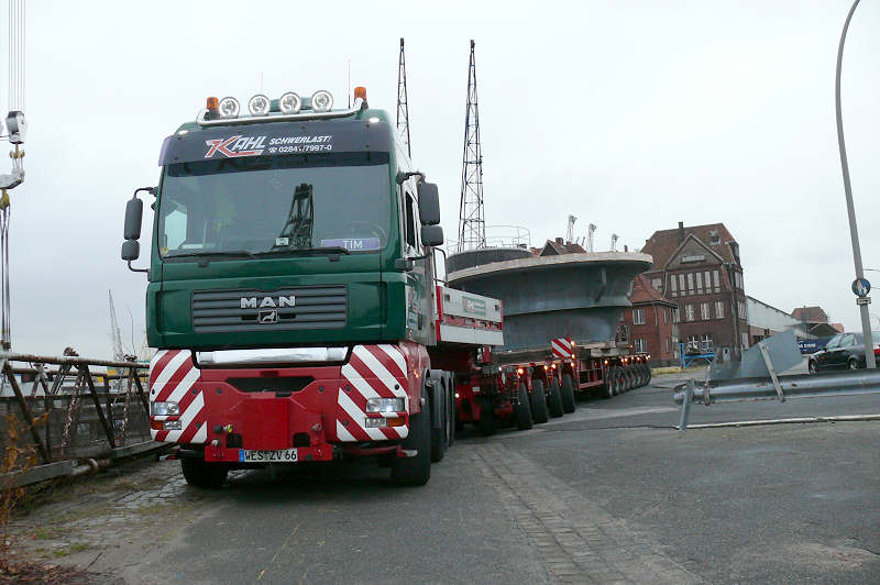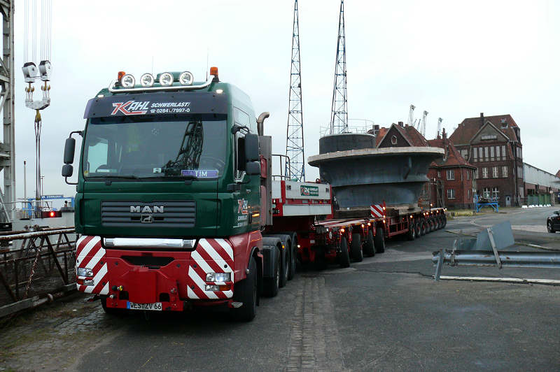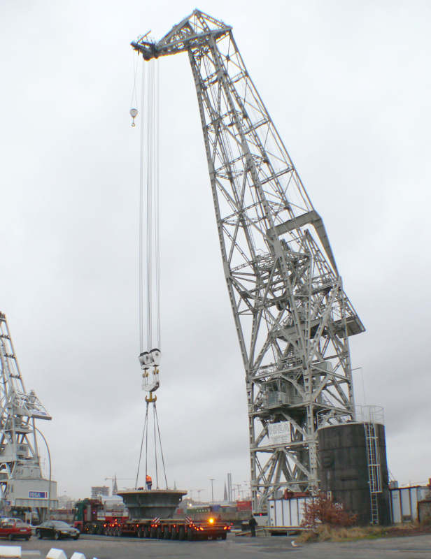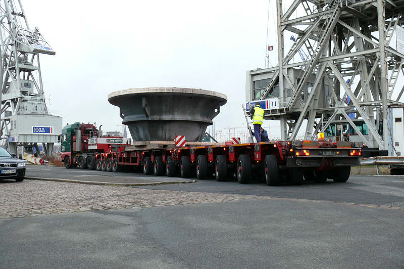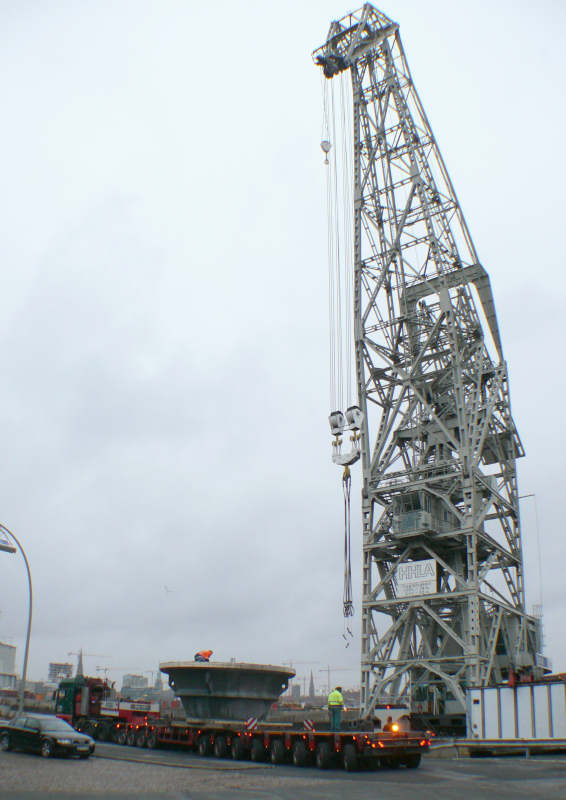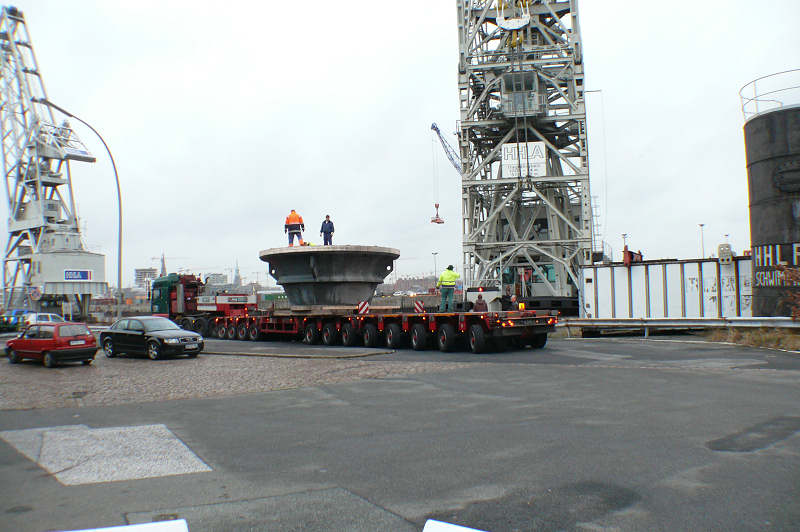 Anlieferung einer 92 t schweren Mahlschüssel im Hamburger Hafen