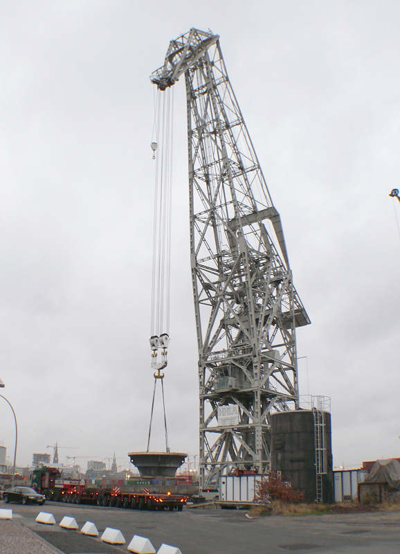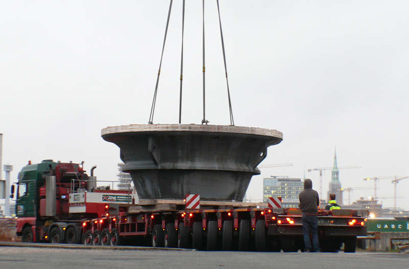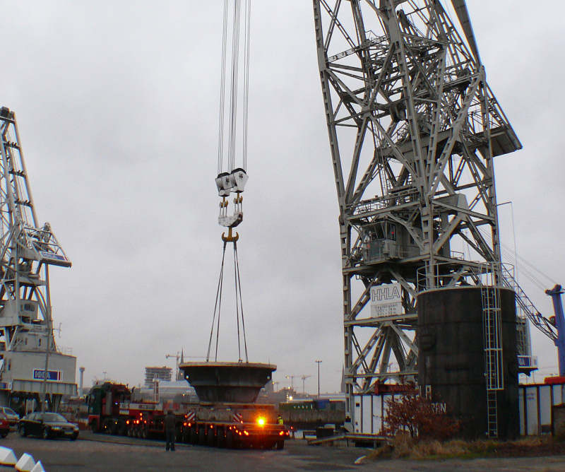 Anlieferung einer 92 t schweren Mahlschüssel im Hamburger Hafen