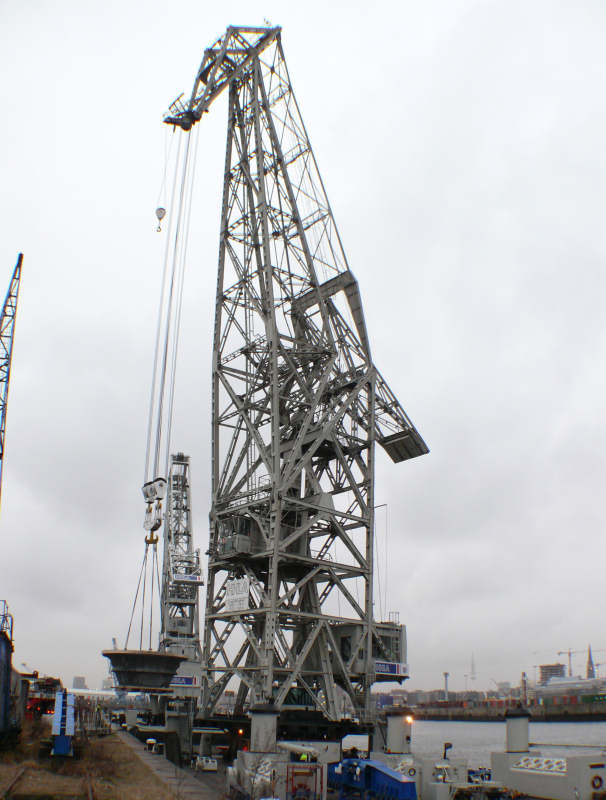 So einen Schwimmkran sieht man auch nicht alle Tage in Aktion.