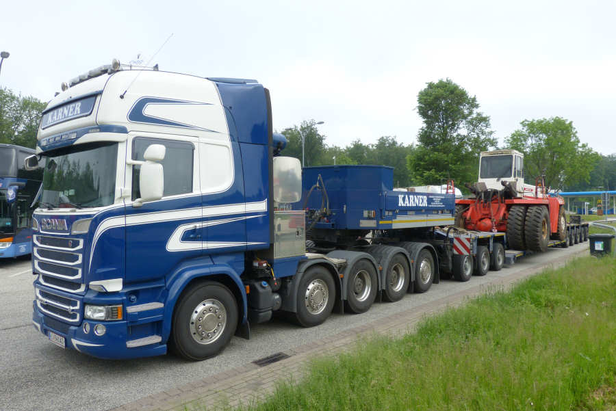 Die Schwerlastkombination bestand aus Scania R 730 10x4 und Goldhofer THP XLE 3/5 Tieflader.