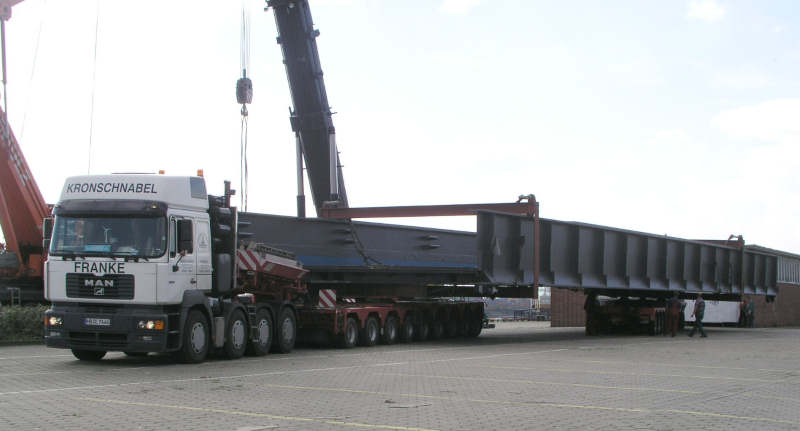 Die Brücke hatte ein Gewicht von 150 t und wurde auf dem Wasserweg nach Hamburg gebracht.
