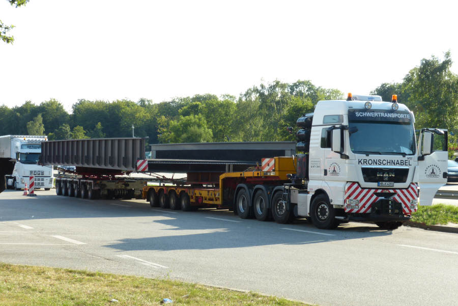 Den Auftrag die Brücken nach Hamburg zu Transportieren und einzuheben hatte Kronschnabel & Franke