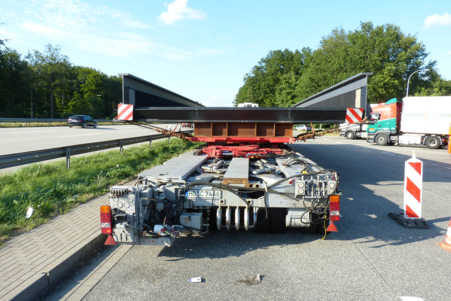 Anfang August kam die Brücke für die Straße Hohe Liedt nach Hamburg. Ca. 70 t schwer, rund 18 m lang