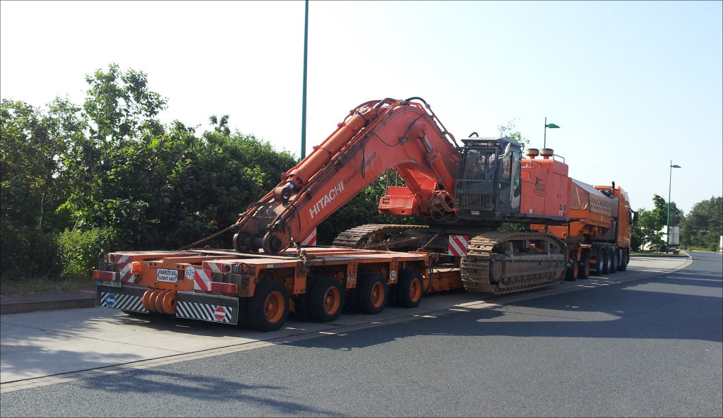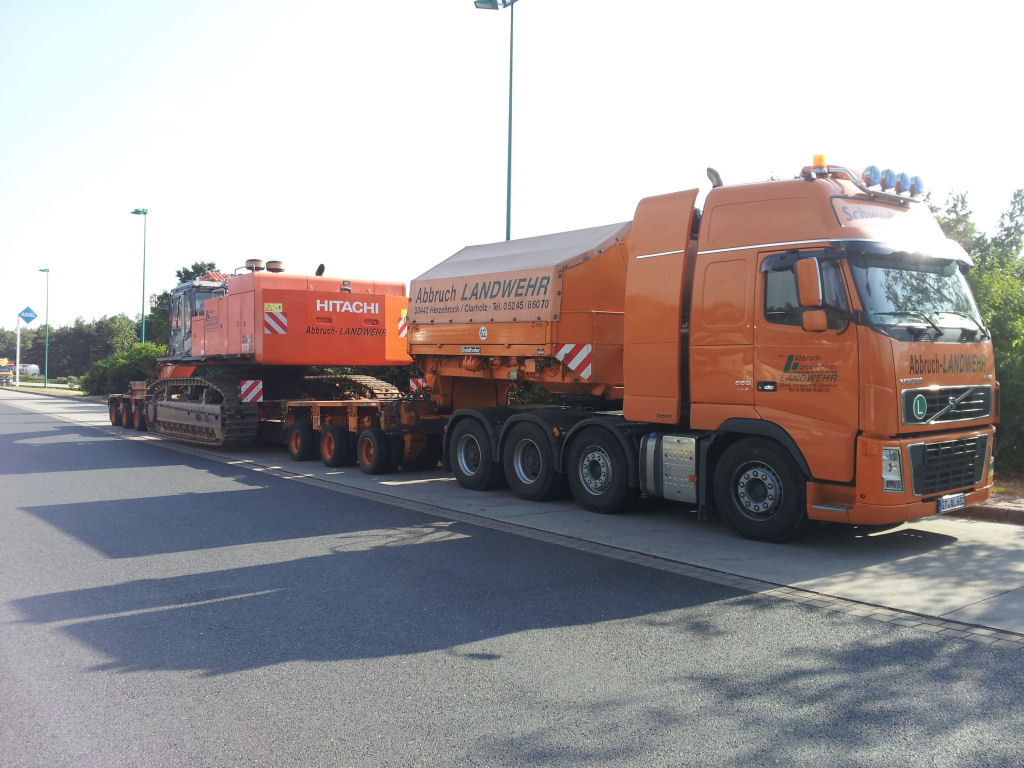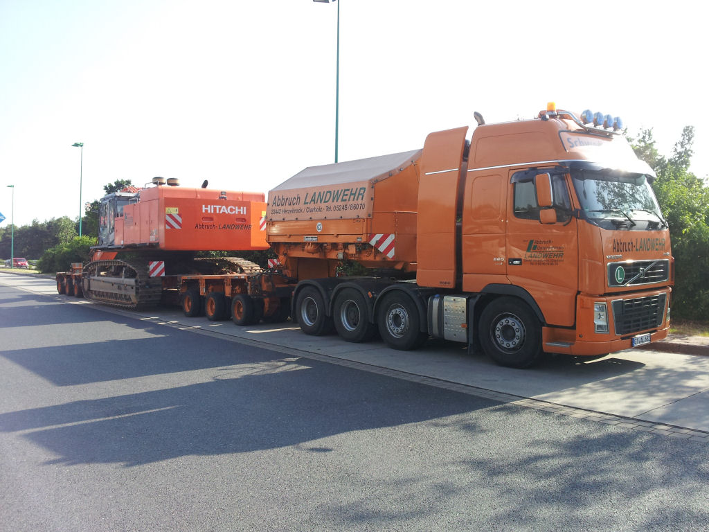 Volvo FH 16 660 mit Goldhofer THP 3-4 Tieflader und Hitachi 870 Bagger