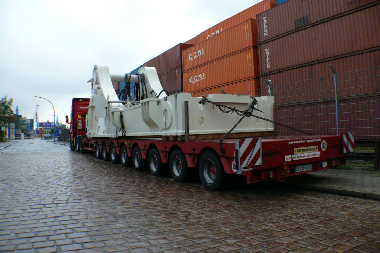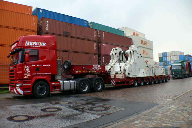 vielen Komponenten, auf zahlreichen Schwertransporten nach Hamburg.