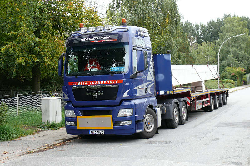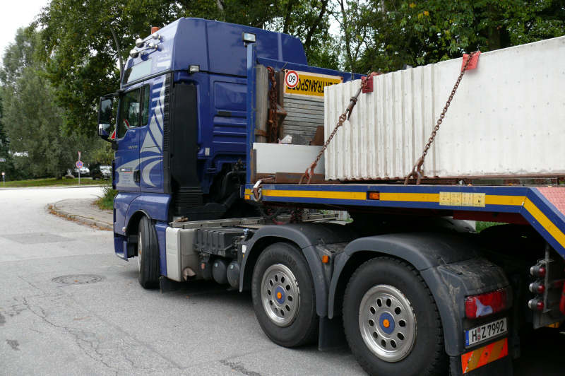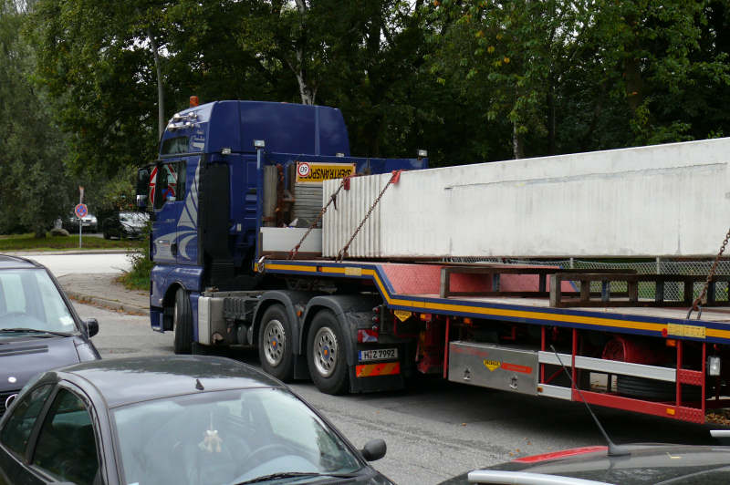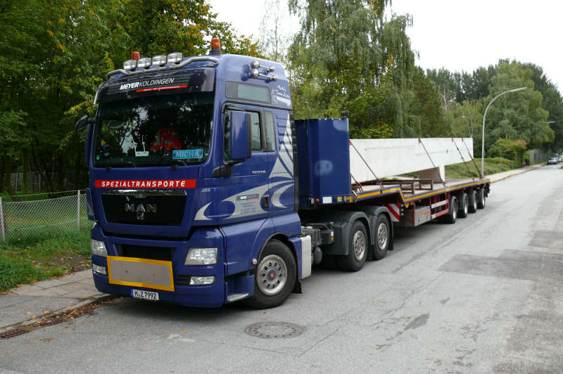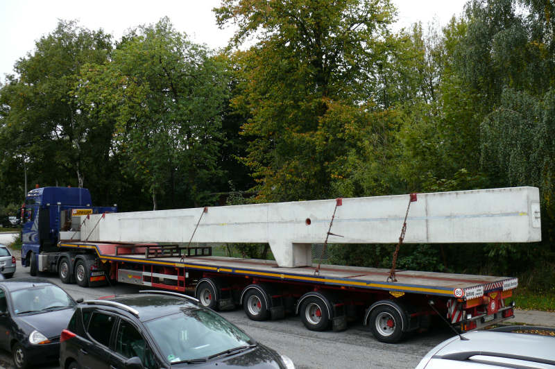 Meyer Koldingen transportierte im Oktober 2010 Betonteile für einen Hallenneubau in HH Moorburg.