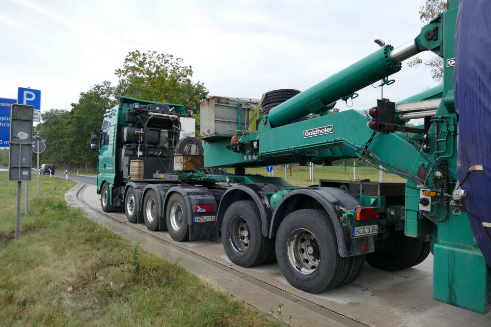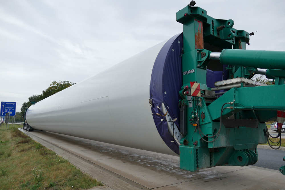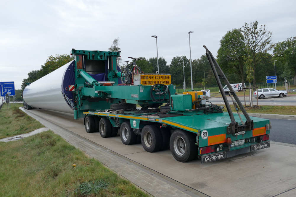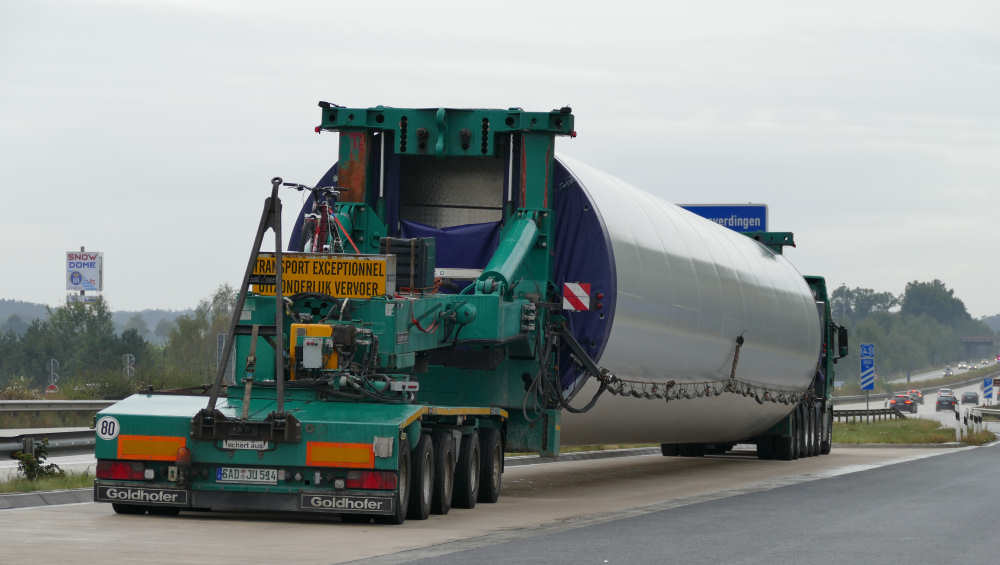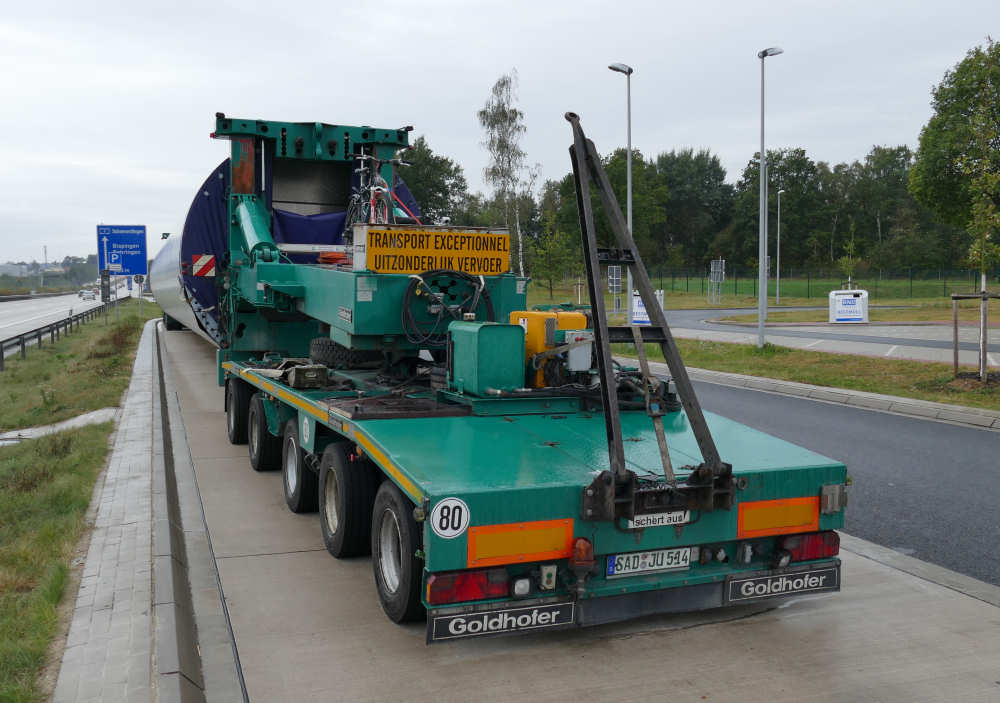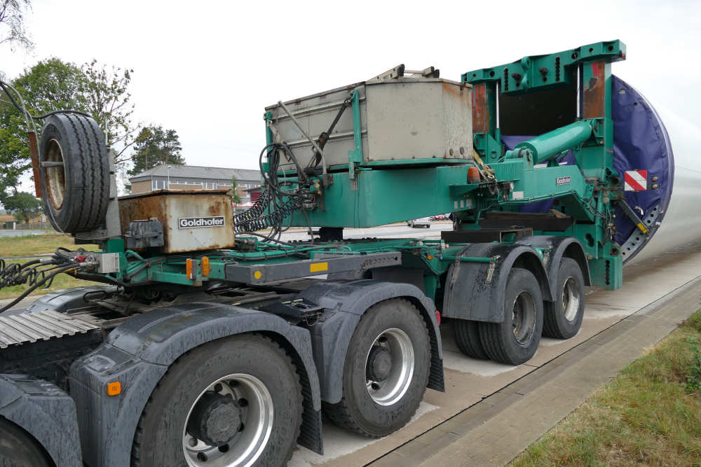 MAN 41.560 TGX mit Goldhofer Rohradapter Kombination und Vestas WEA Turmelement
