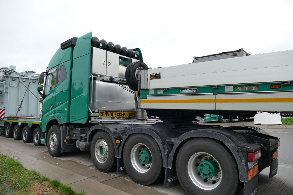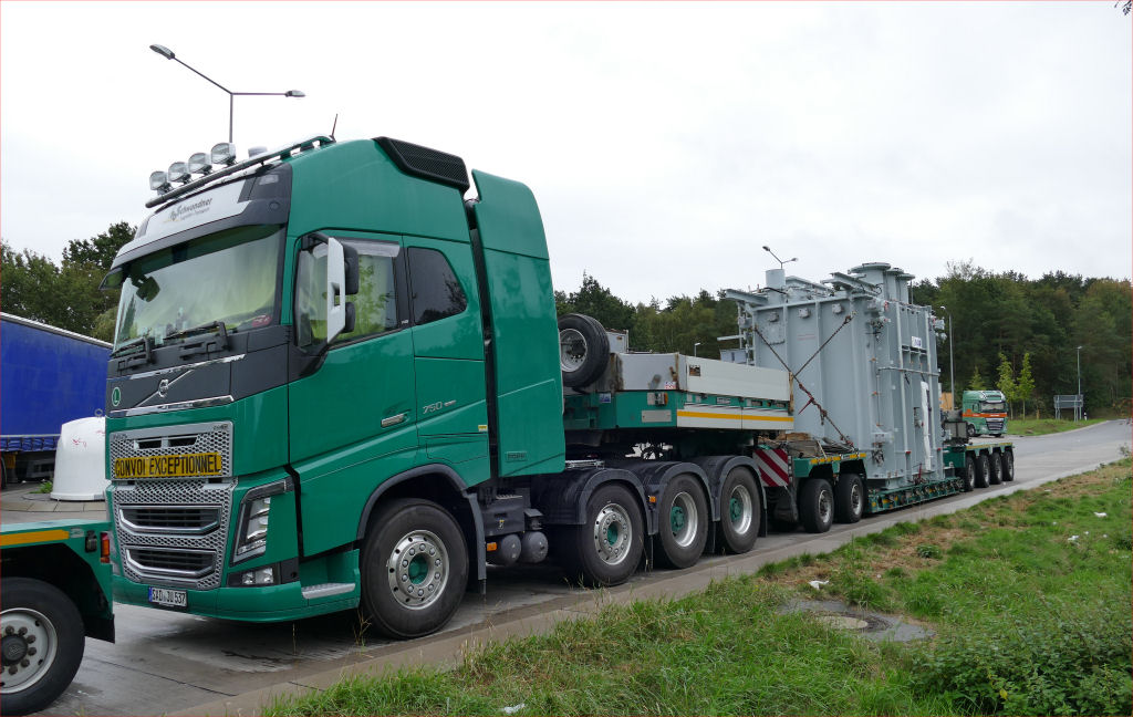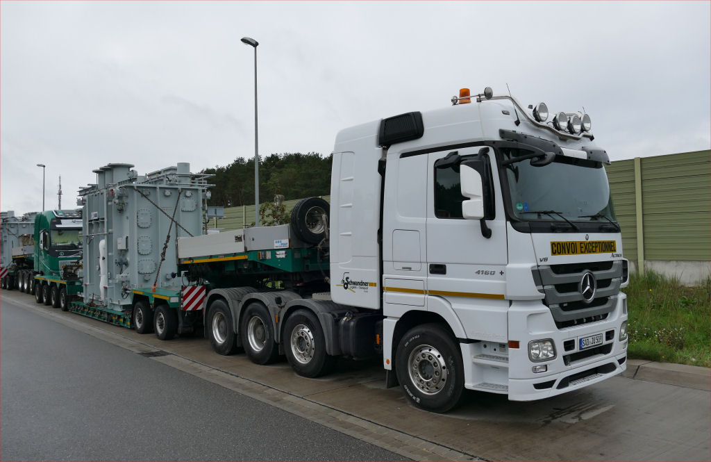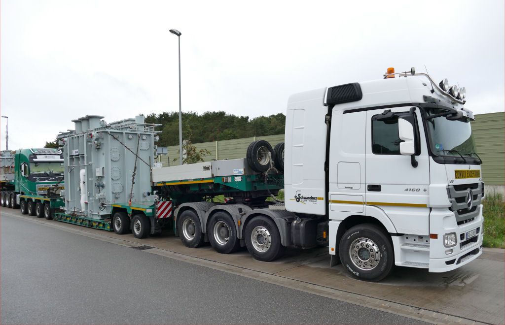 MB 4160 MP3 + Volvo FH 04 750 mit zwei Trafotransporten