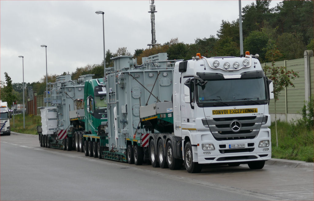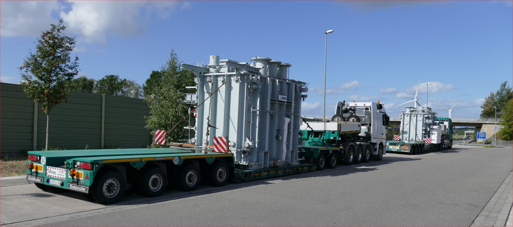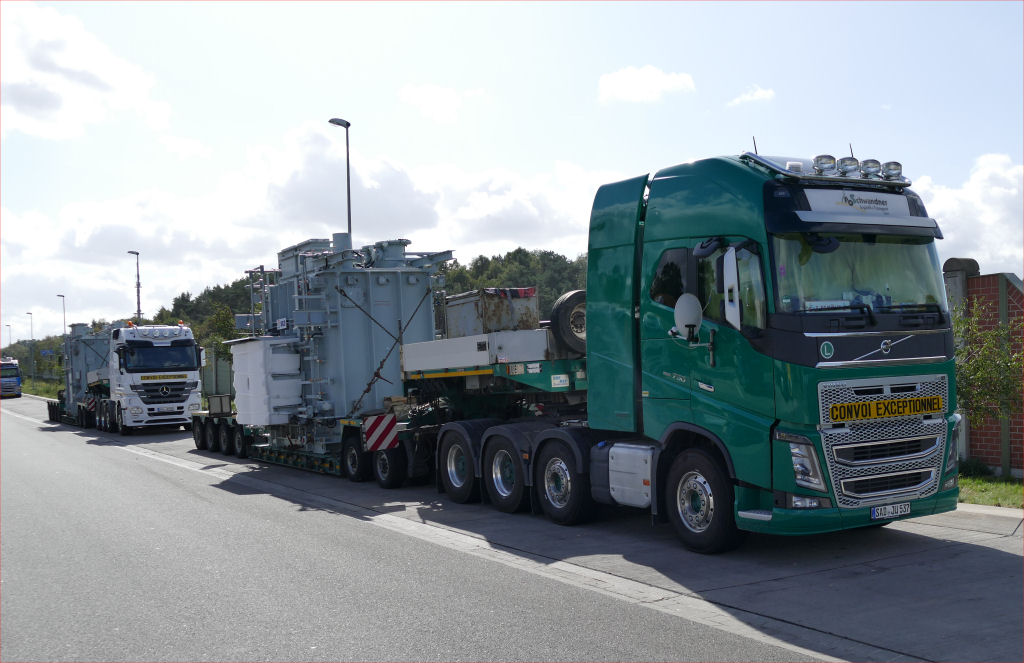 MB 4160 MP3 + Volvo FH 04 750 mit zwei Trafotransporten