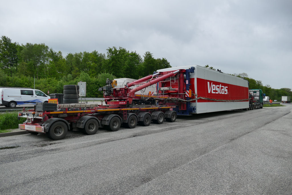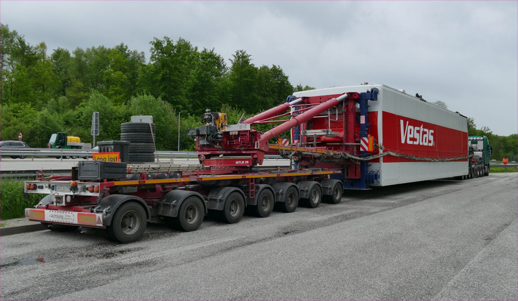 Volvo FH 04 750 8x4 mit Goldhofer Mega Windmilltransporter und Vestas V 150 Maschinenhaus