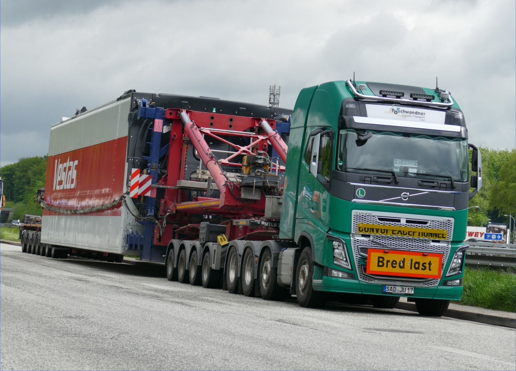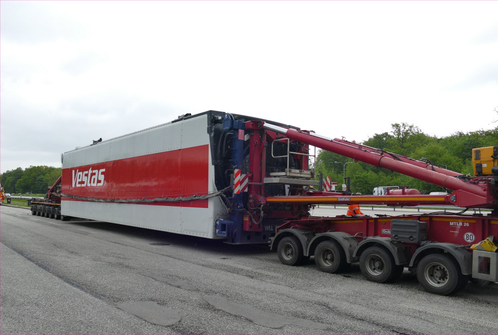 Volvo FH 04 750 8x4 mit Goldhofer Mega Windmilltransporter und Vestas V 150 Maschinenhaus