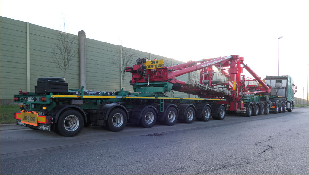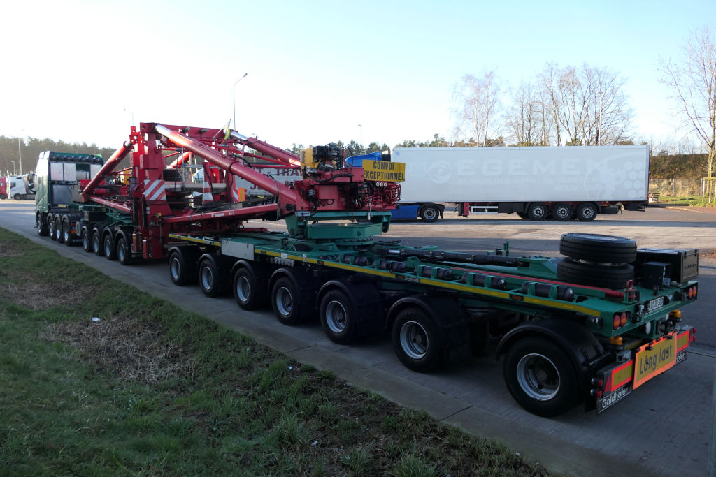 Volvo FH 16 750 8x4 mit Goldhofer Mega Windmilltransporter auf Leerfahrt