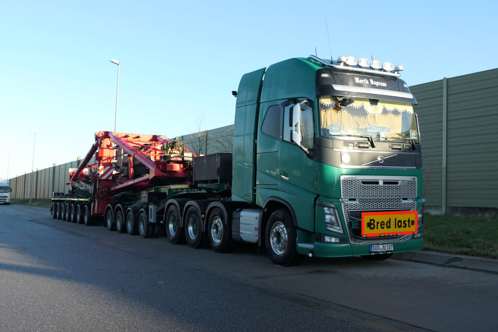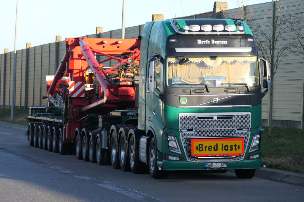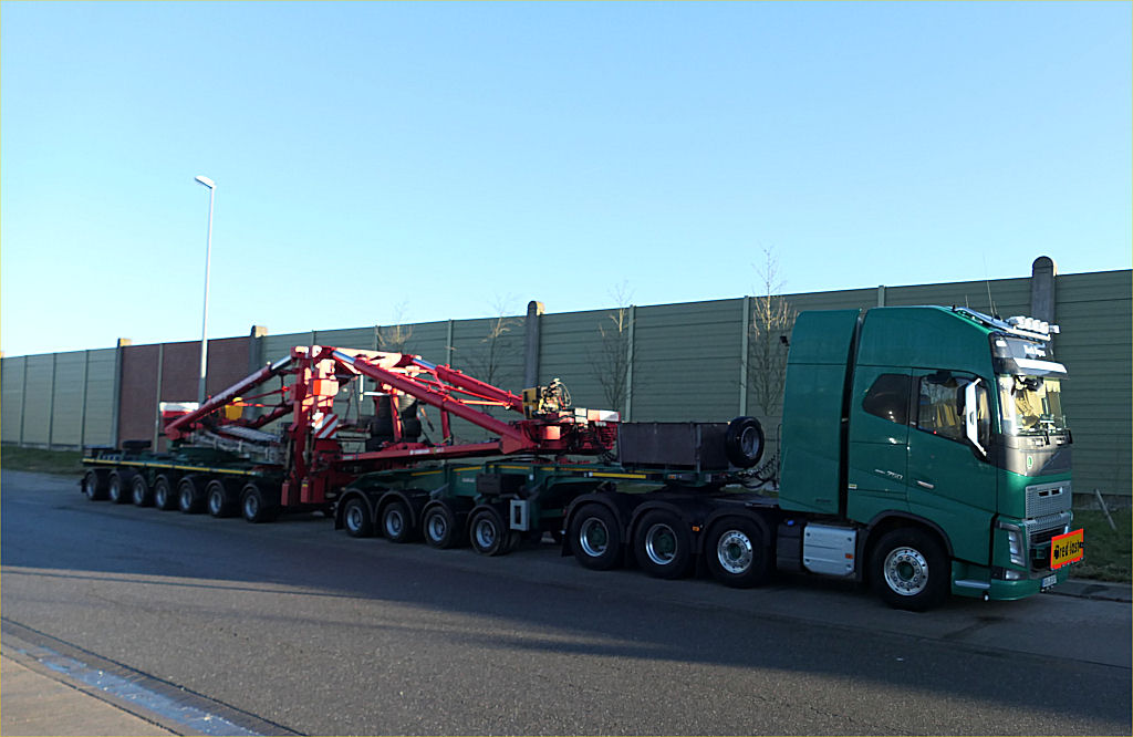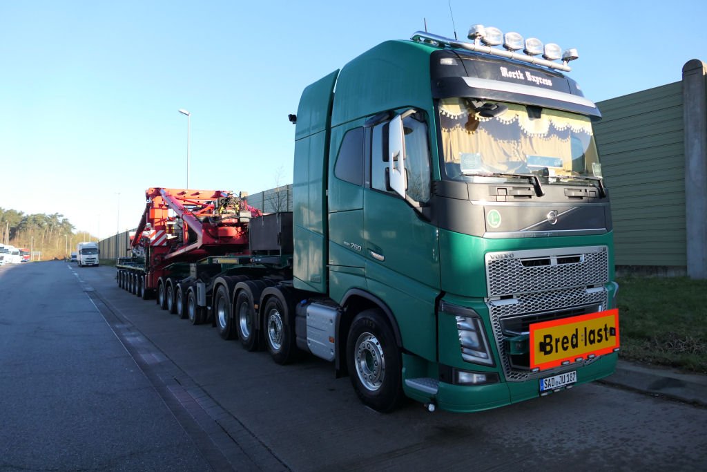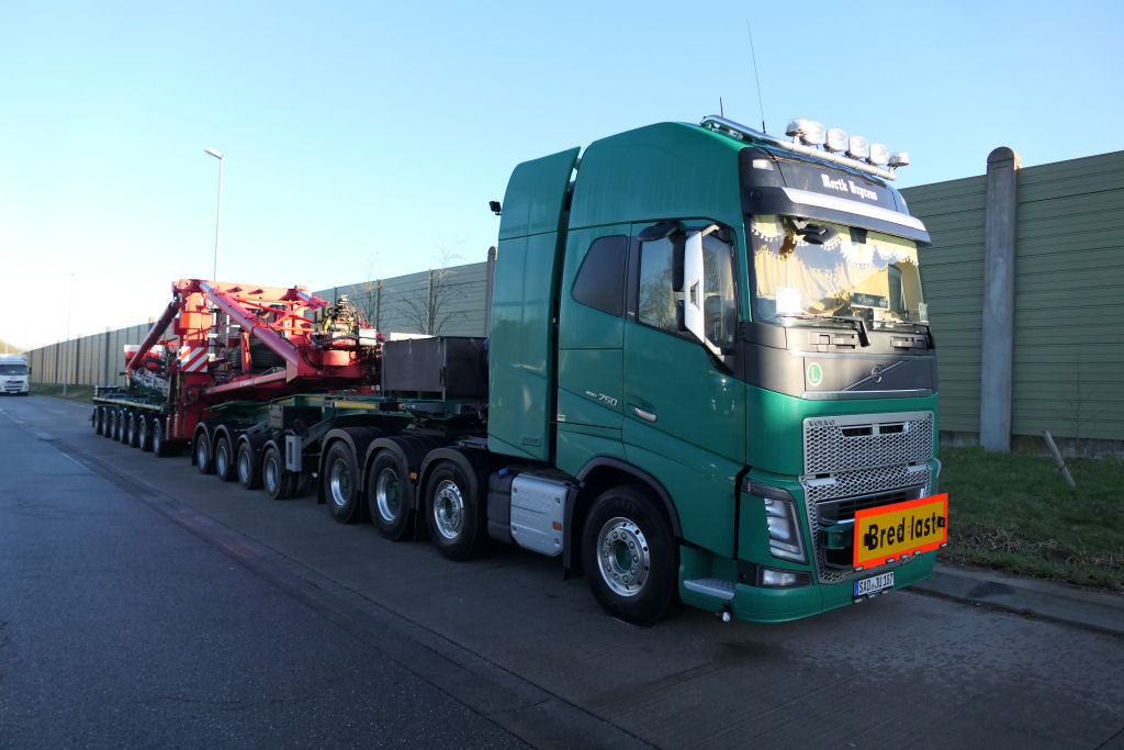 Volvo FH 16 750 8x4 mit Goldhofer Mega Windmilltransporter auf Leerfahrt