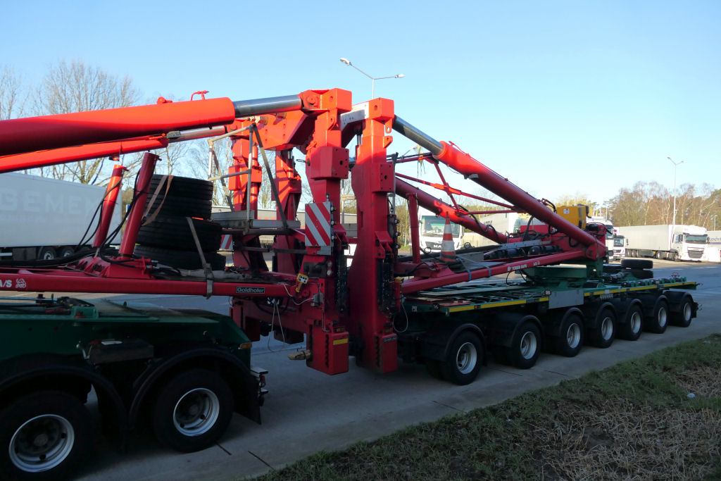 Volvo FH 16 750 8x4 mit Goldhofer Mega Windmilltransporter auf Leerfahrt