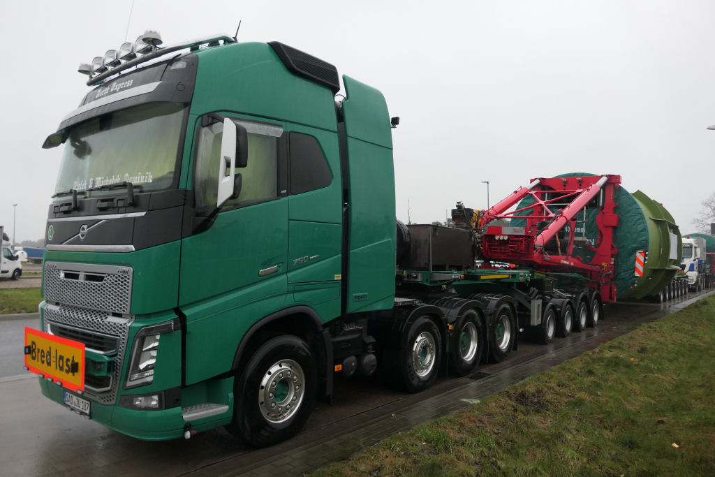 Volvo FH 16 750 8x4 mit Goldhofer Mega Windmilltransporter und Enercon Bodensektion