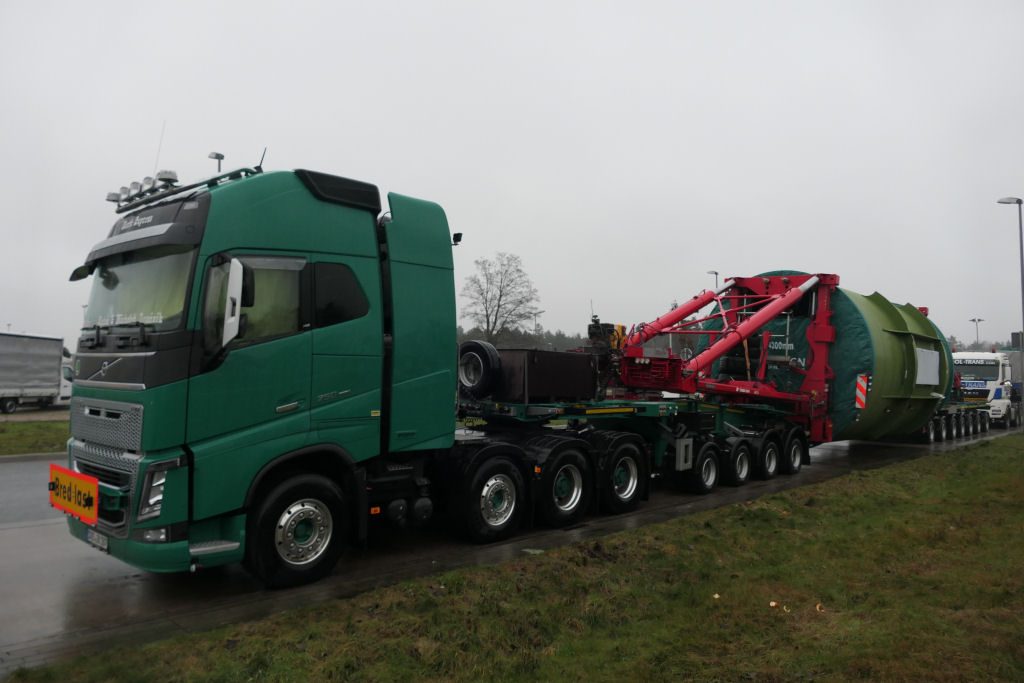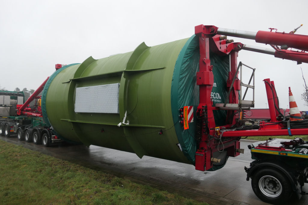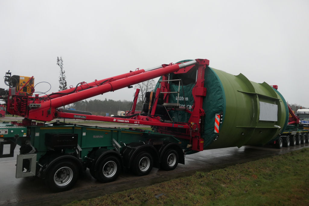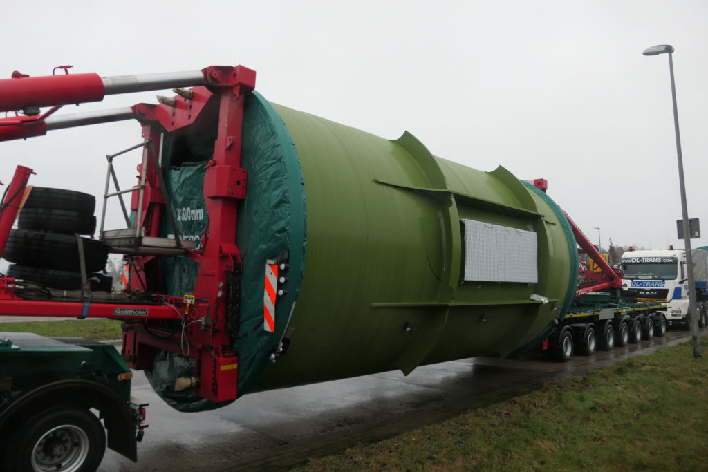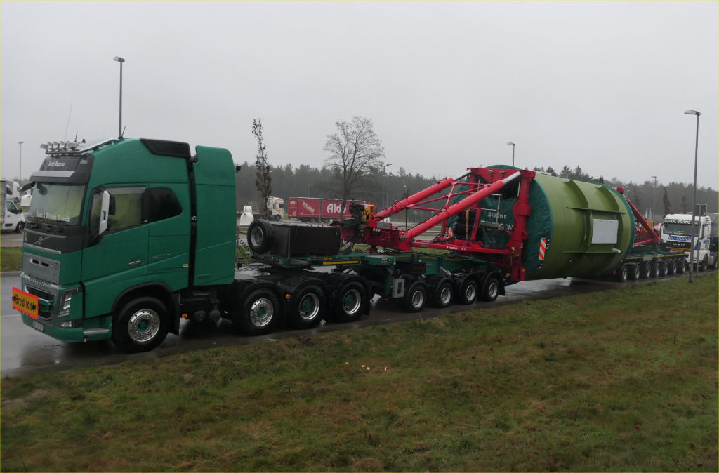 Transportiert wurde eine rund 60 t schwere Bodensektion für eine Enercon WEA.