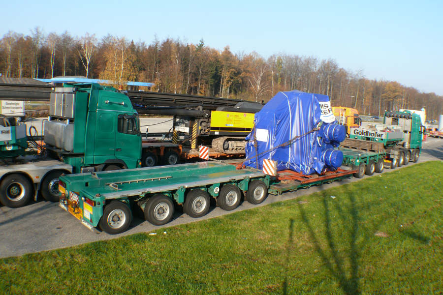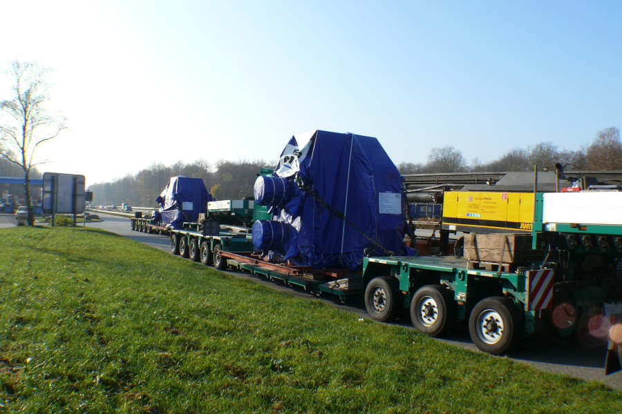 Transport von Maschinenteilen für den Export
