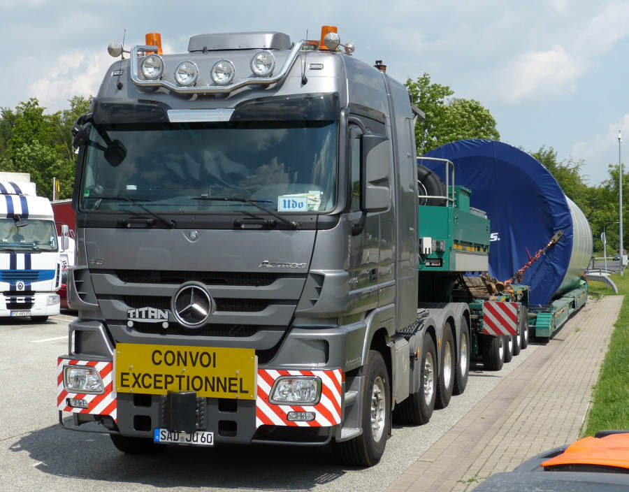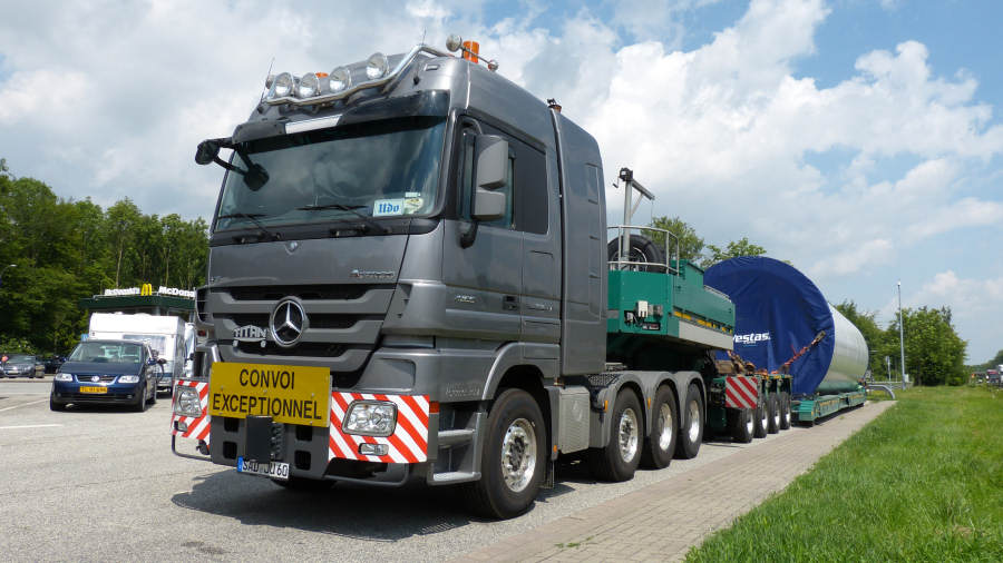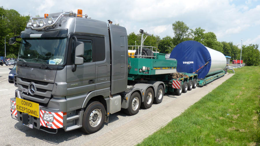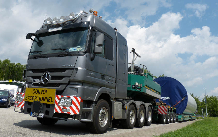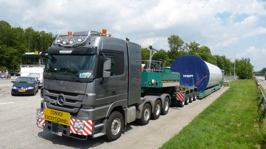 MB 4165 MP 3 mit Goldhofer Kombination und Vestas Turmteiltransport