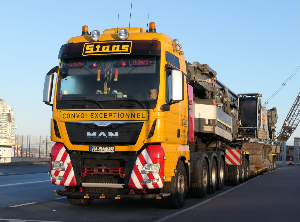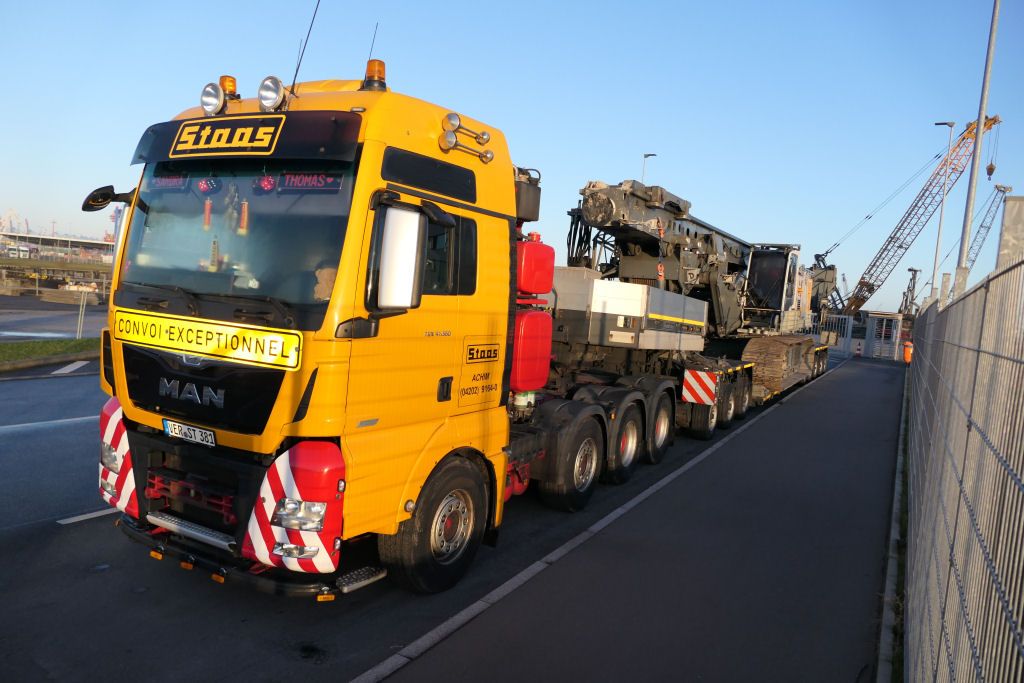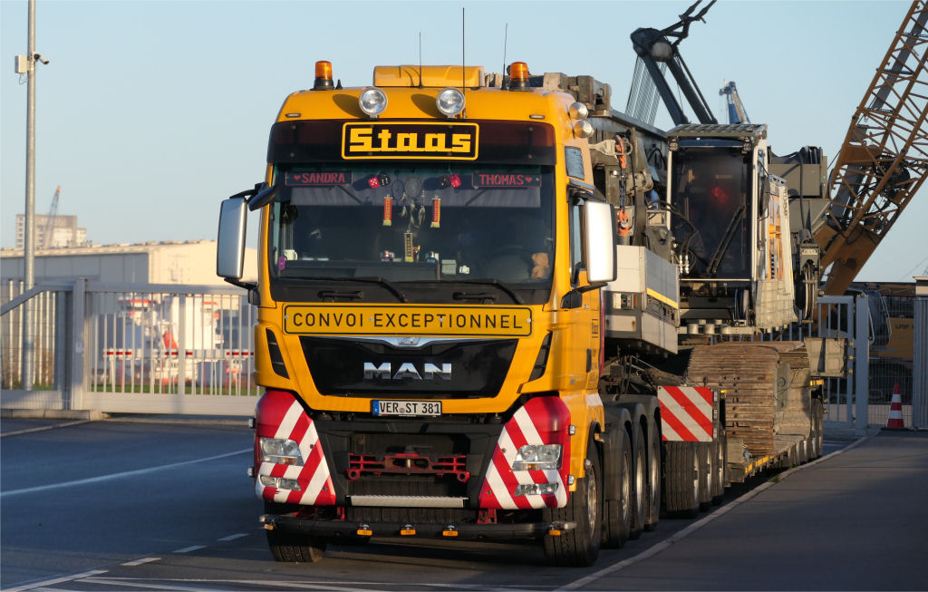 Im Februar 2022 entdeckte ich erneut einen Transport von Staas vor der Liebherr Niederlassung im Ellerholzhafen in Hamburg.