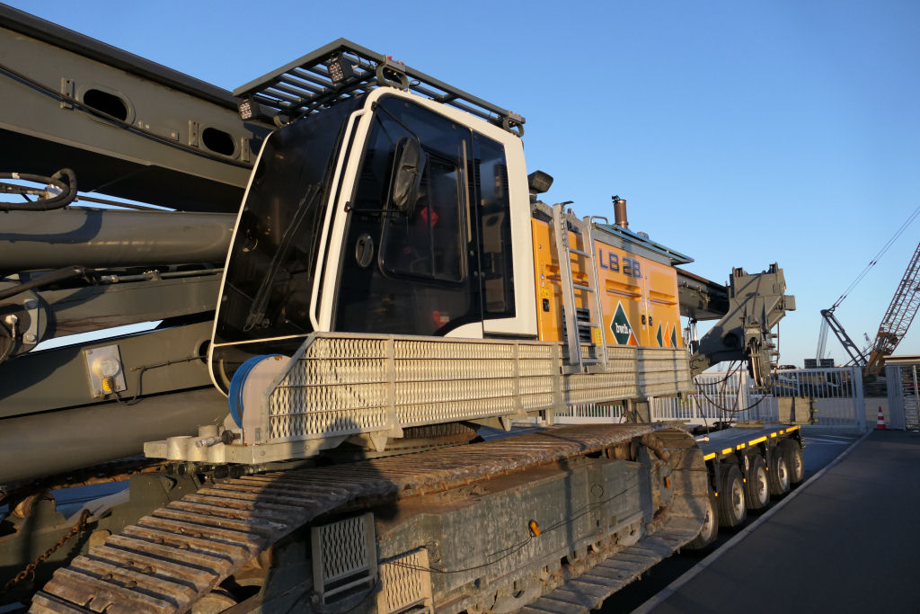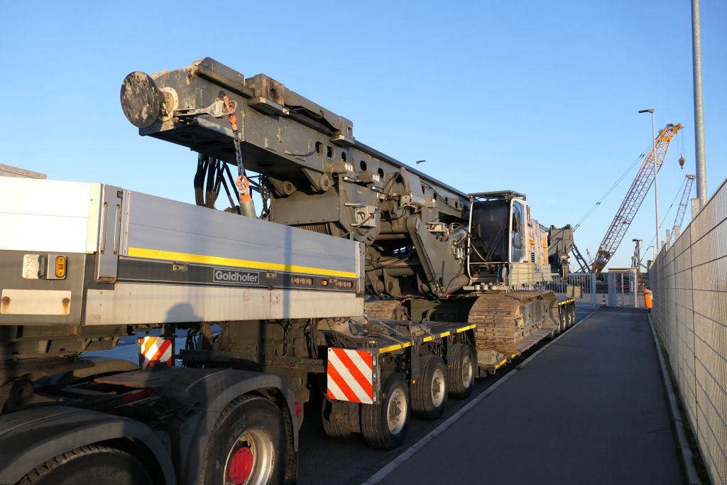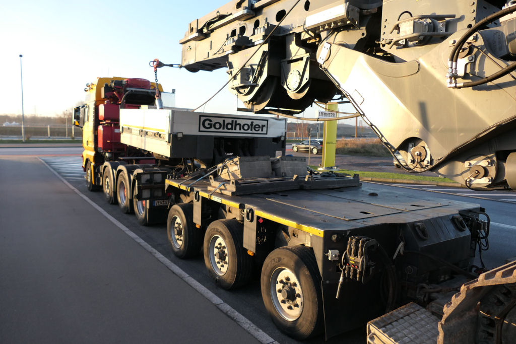 Es wurde ein Liebherr LB 28 Drehbohrgerät von BWH abgeholt, der Transport stand startbereit vor dem Gelände.