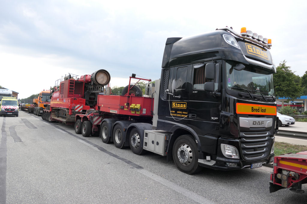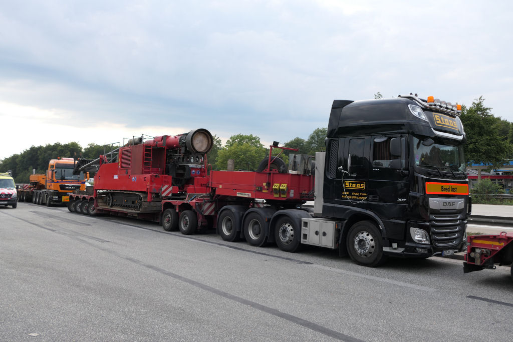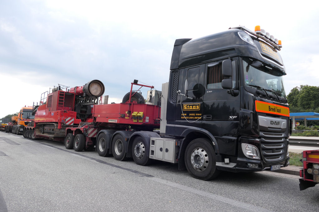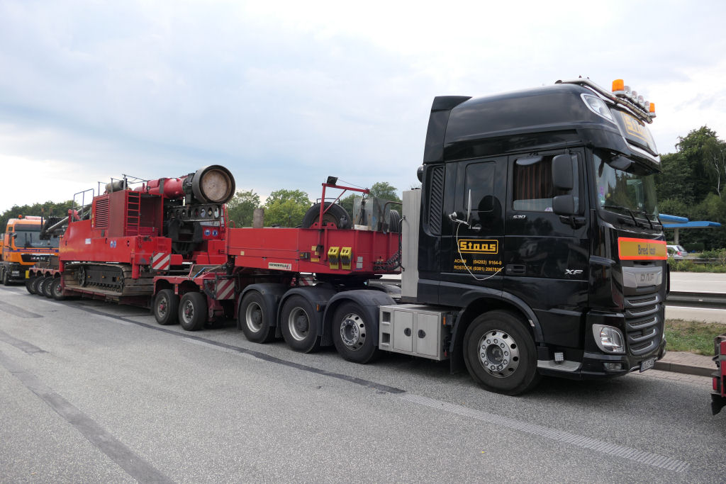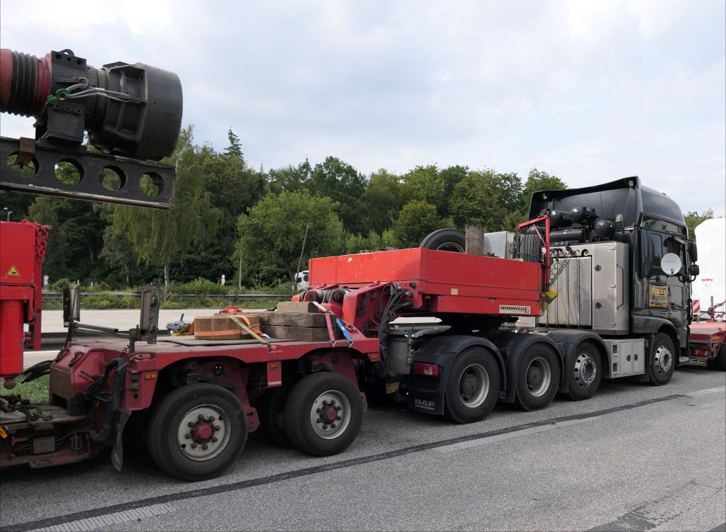 DAF 530 XF 8x4 mit Faymonville 2-4 Tieflader und Transcoma Ramme